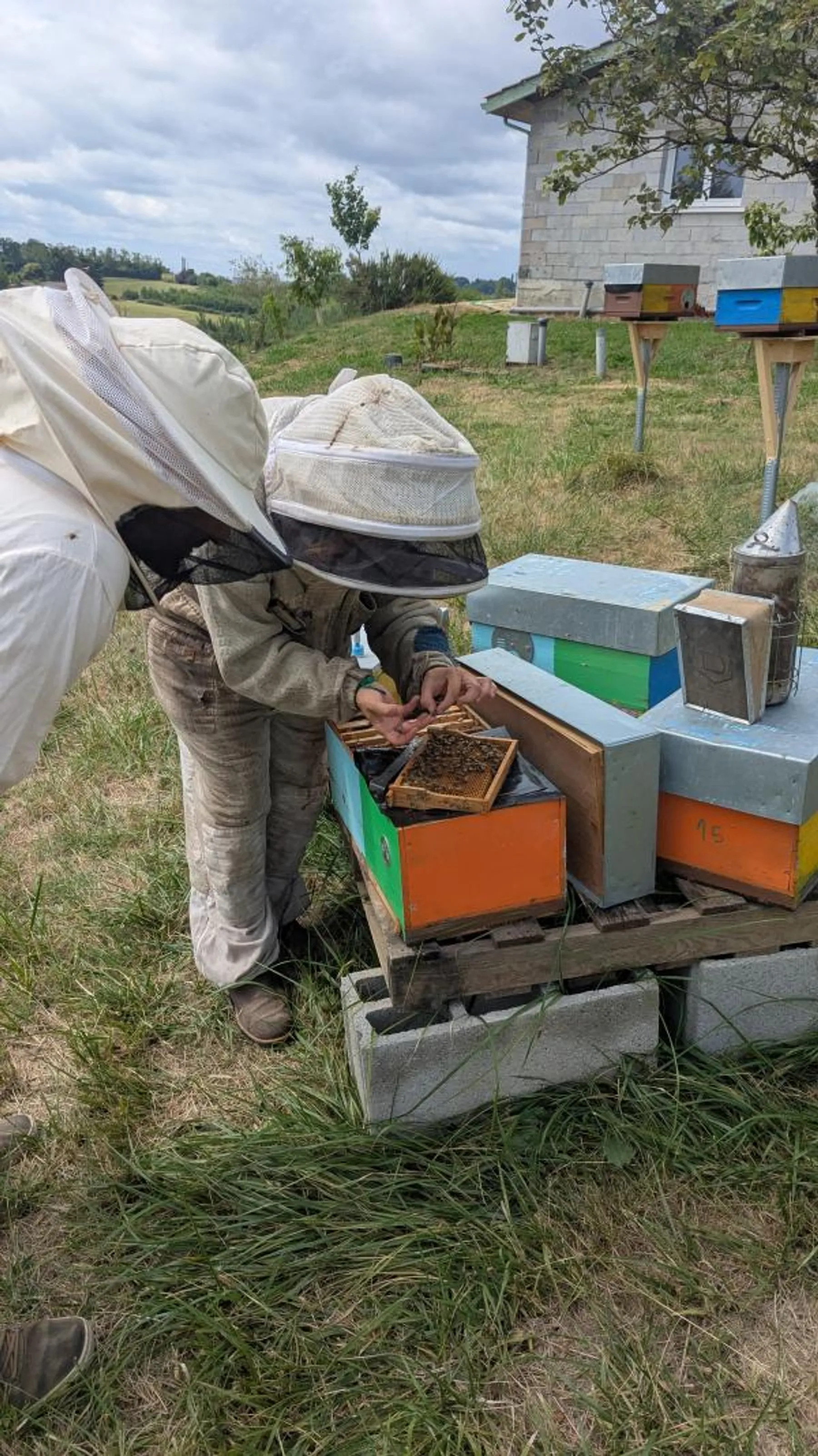 Vous enfilerez ensuite votre combinaison et vous vous rendrez au rucher afin de découvrir les différents travaux de l'apiculteur. Muni de votre enfumoir, vous découvrirez les ruches et les abeilles au plus près.