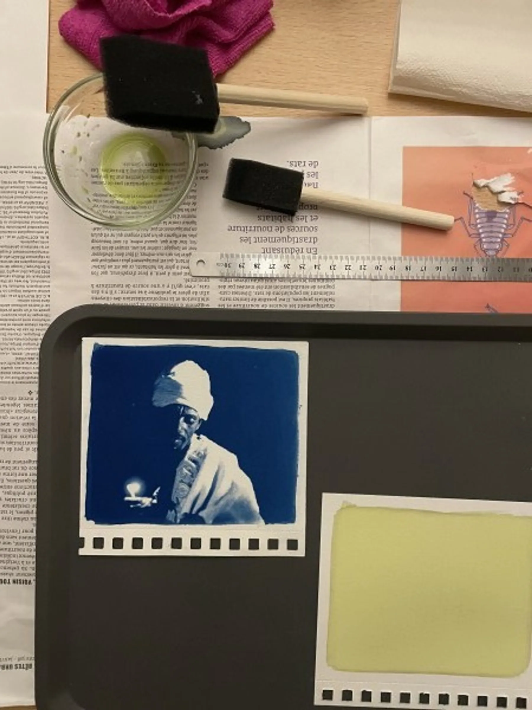 4. Révélation Magique : Assistez à la magie du cyanotype alors que vos photos se développent sous vos yeux, transformées en magnifiques tirages bleus alternatifs.