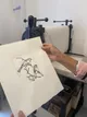 • Accueil et présentation : commencez par une présentation de l’histoire de la pointe sèche et des outils utilisés : plaque de plexiglas, pointe sèche, encre et papiers d’impression. Sterenn vous explique le fonctionnement de chacun d’eux pour préparer au mieux votre exploration artistique.