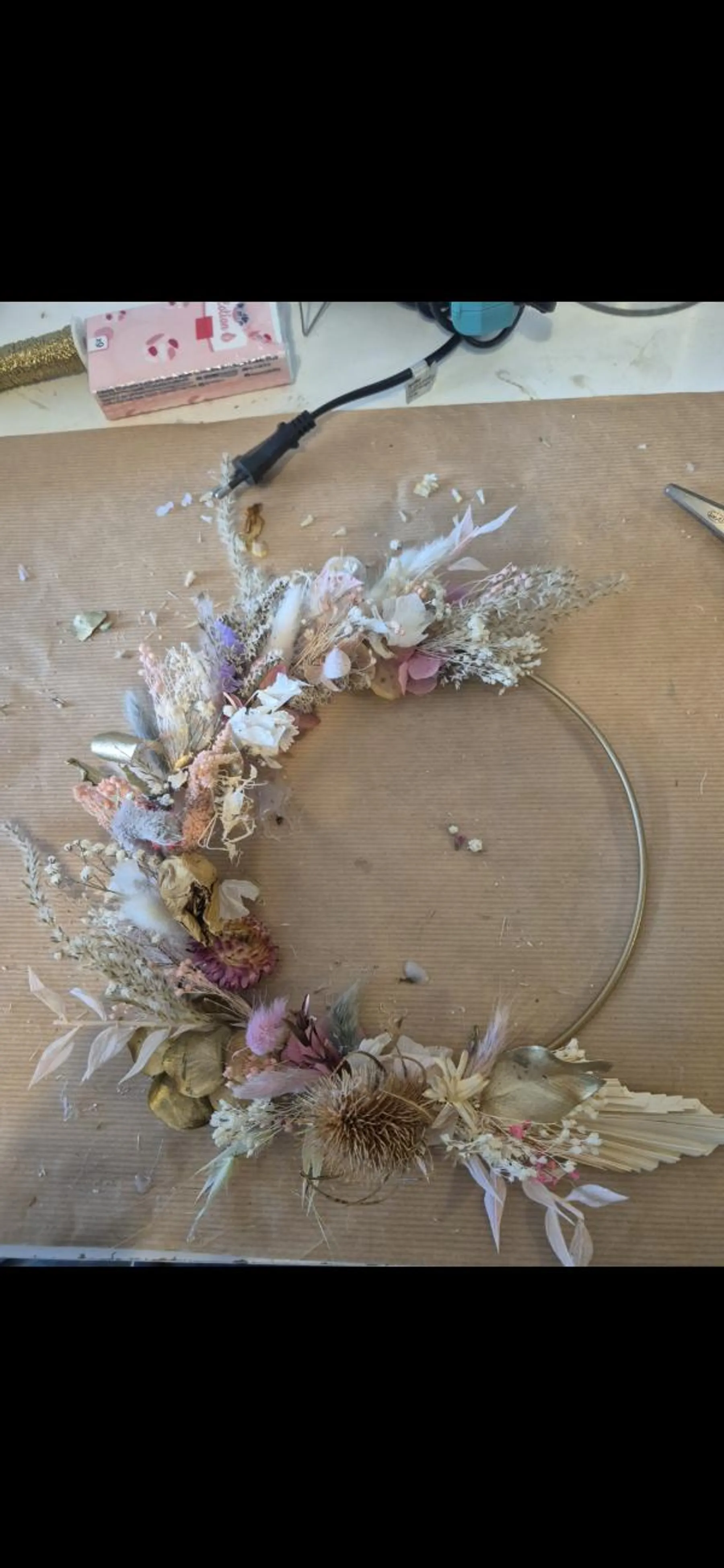 Au fil de la création, grâce aux conseils précieux de Clémence, votre couronne prendra forme petit à petit.