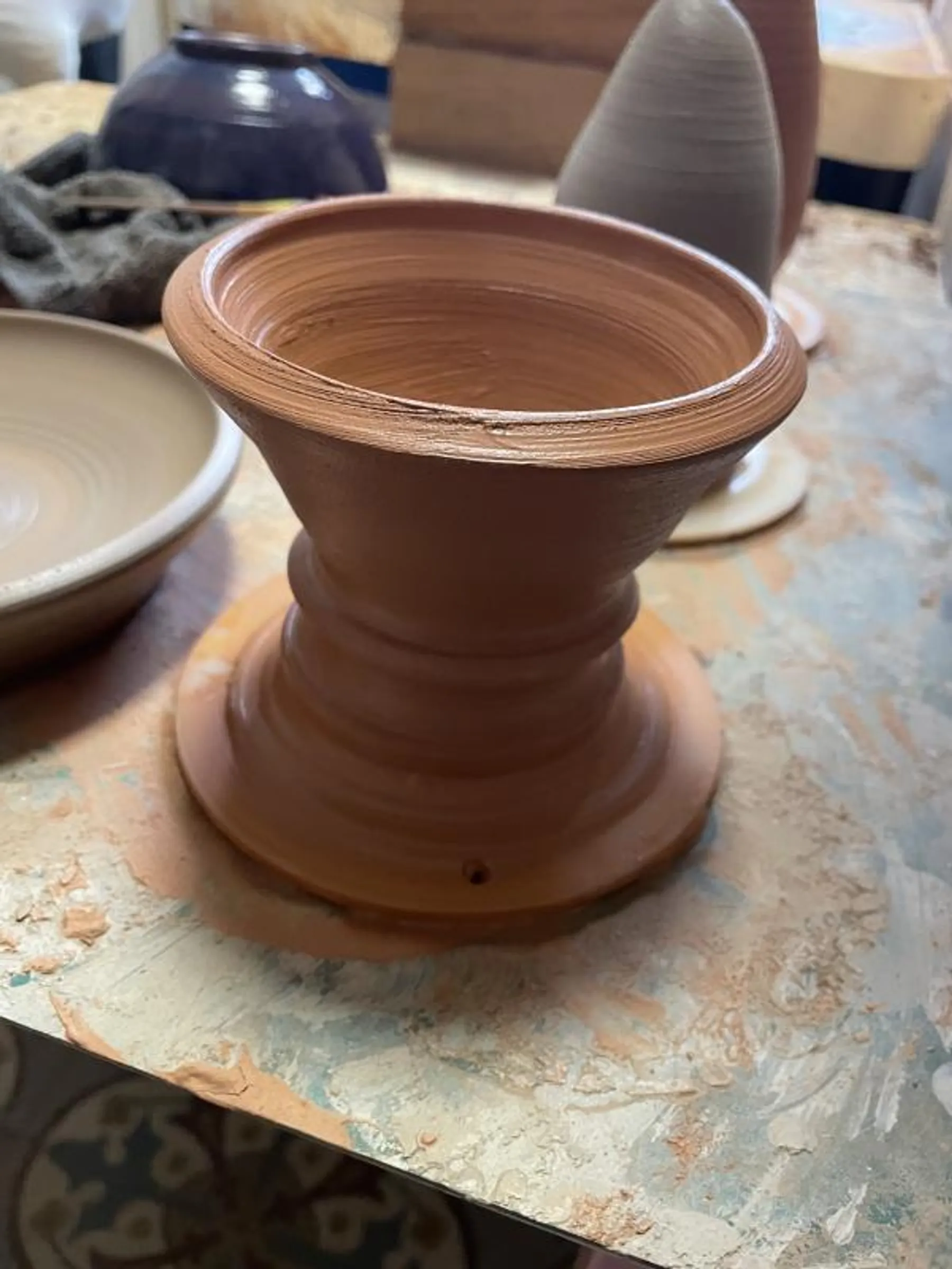 Puis, ce sera à vous de jouer ! Vous aurez l'opportunité de façonner votre œuvre à l'aide de deux techniques : le modelage à la plaque ou le tour de potier. Si vous optez pour le tour de potier, vous découvrirez les secrets du bol inversé. Vous aurez même la chance de personnaliser le couvercle de votre oya pour lui donner une touche unique.