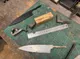 Depuis un petit bloc de bois brut, vous tracerez la forme du manche. Vous percerez ensuite des trous pour y loger vos rivets afin de tenir la lame.