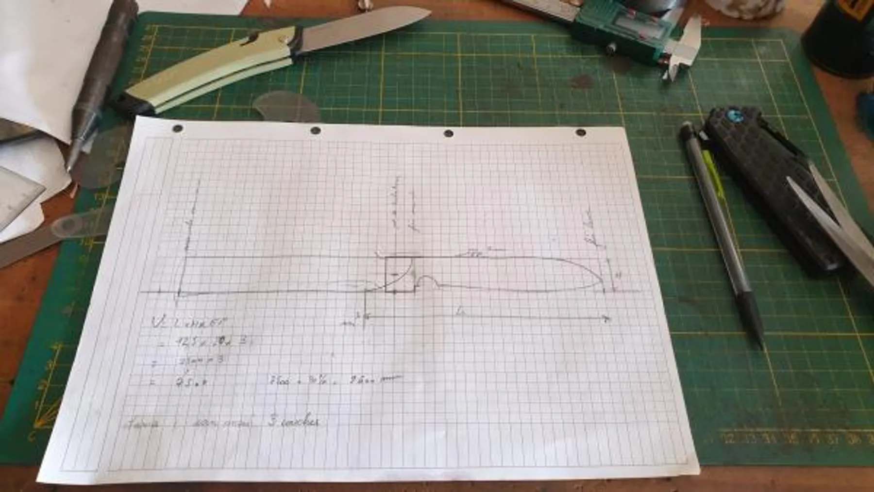 Vous entamerez la fabrication de votre couteau par le dessin du modèle souhaité.