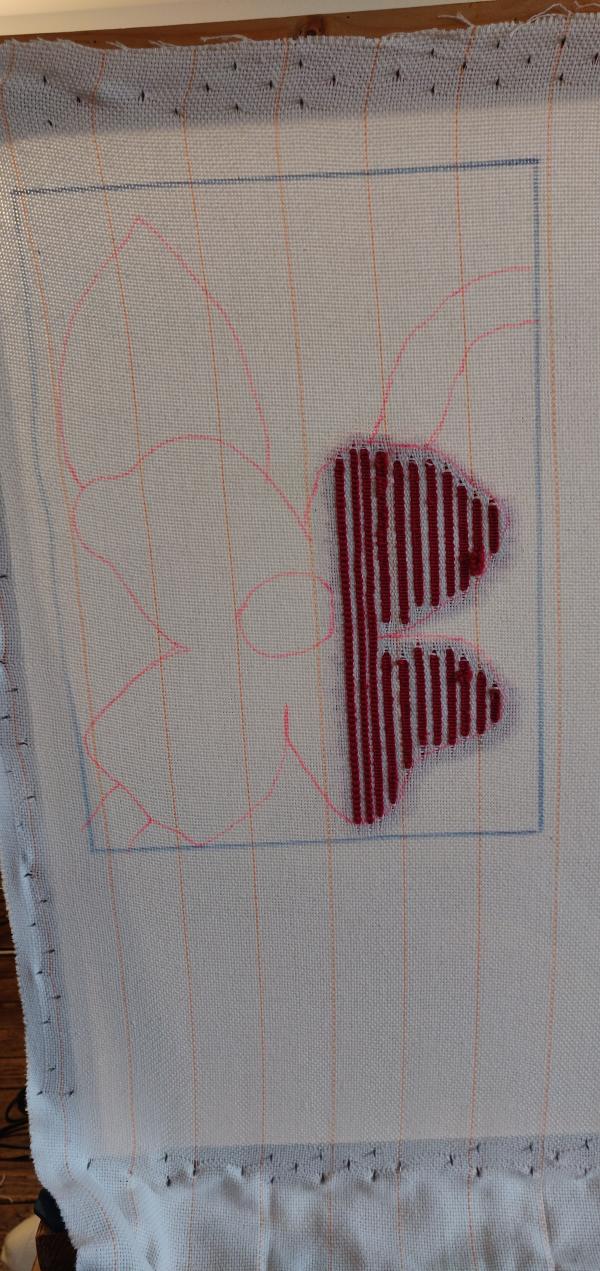 Pauline a expliqué clairement les bonnes pratiques en allant à l'essentiel pour pouvoir prendre en main rapidement la machine. J'ai eu le temps de réaliser un motif à main levé puis de choisir les couleurs des pelotes. Le montage de l'ensemble est abordé par difficultés croissantes. Pauline veille aussi au bien-être des apprentis. La réalisation est peu complexe et se fait dans la détente. Le résultat est très satisfaisant surtout pour une première fois.