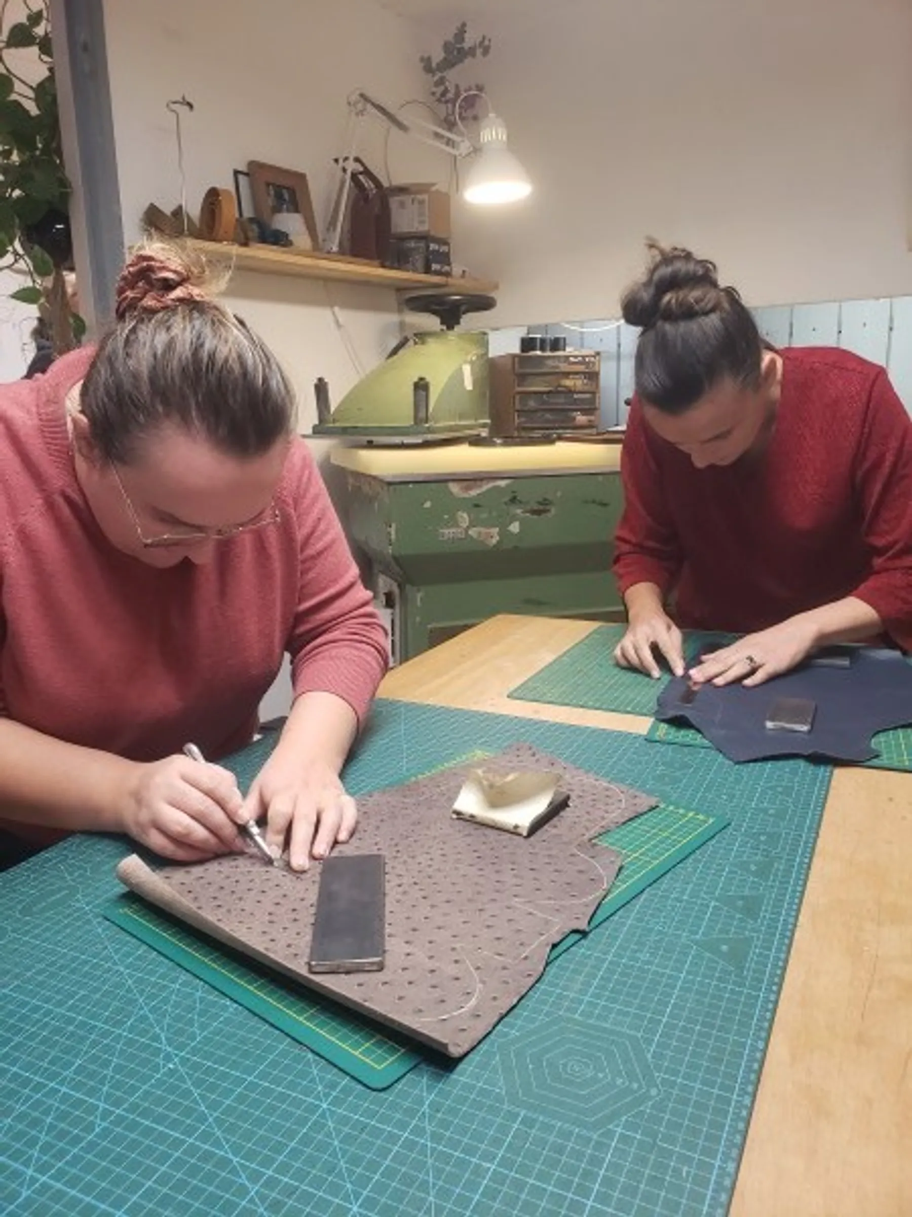 Puis, après avoir fait le tour de l'atelier, vous découvrirez les outils de maroquinerie, apprenant à maîtriser l'outil de coupe ainsi que l'art précis du rivetage. Commencez par vous familiariser avec les gestes sur du carton, puis passez aux chutes de cuir pour affiner votre technique. Progressivement, vous vous approprierez ces compétences essentielles.