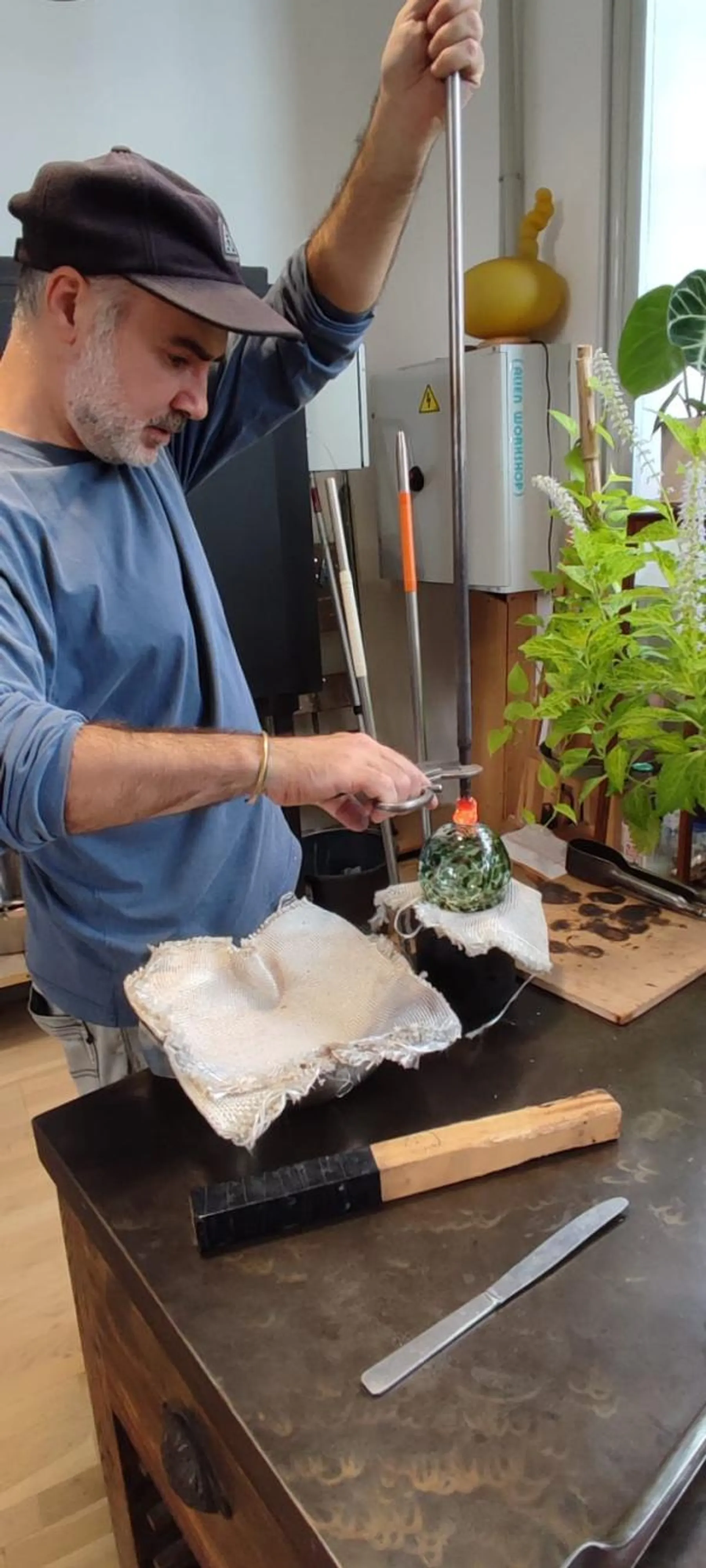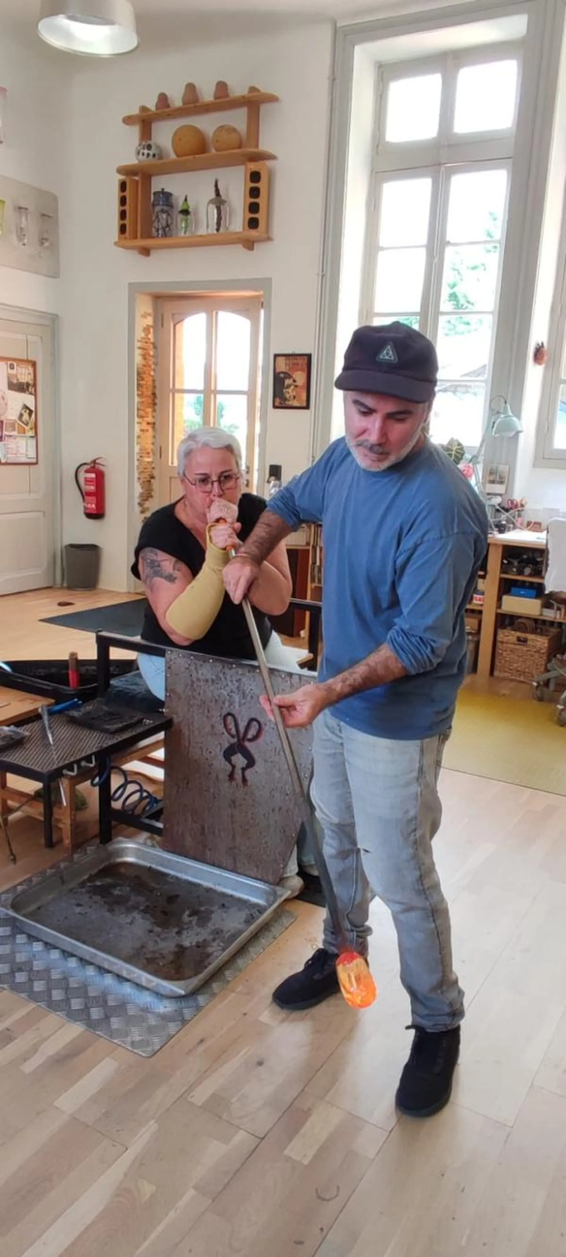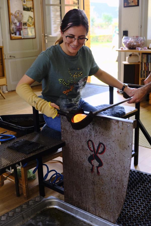 L'artisan d'art vous présentera les différents équipements, vous expliquera les caractéristiques de la matière en fusion, et vous fera une petite démonstration pour vous familiariser avec les techniques de soufflage.