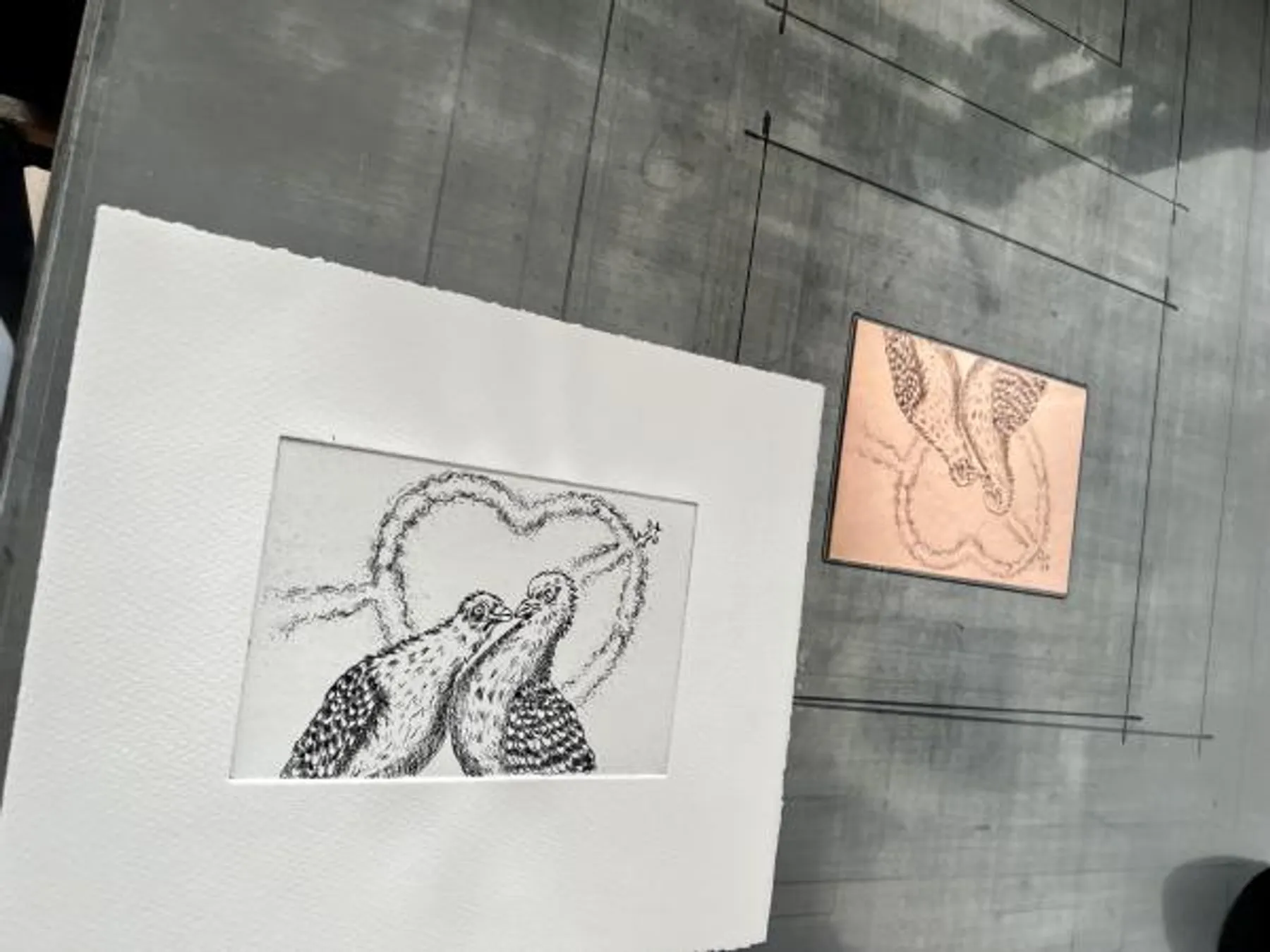 Votre jolie plaque de cuivre gravée et vos deux impressions uniques