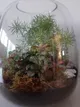 Grand terrarium, hauteur 27cm, largeure 23cm (environ), jolies plantes proposées, avec des couleurs si l'on veut et des cailloux de toutes les couleurs aussi. Atelier offert en cadeau de pot de départ, C'est une valeur sûre que je recommande ! N'hésitez pas à vous inspirer des photos aussi, en amont, même si quoi que vous choisissiez ce sera joli