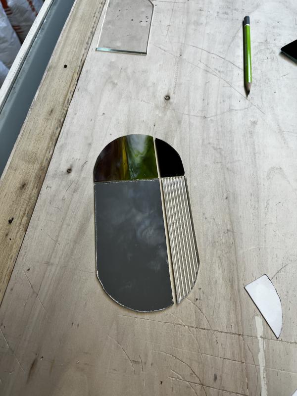 Puis, vous réaliserez la maquette de votre création pour ensuite découper les calibres de chaque pièce. Vous aurez le choix de la forme et des couleurs de votre miroir.