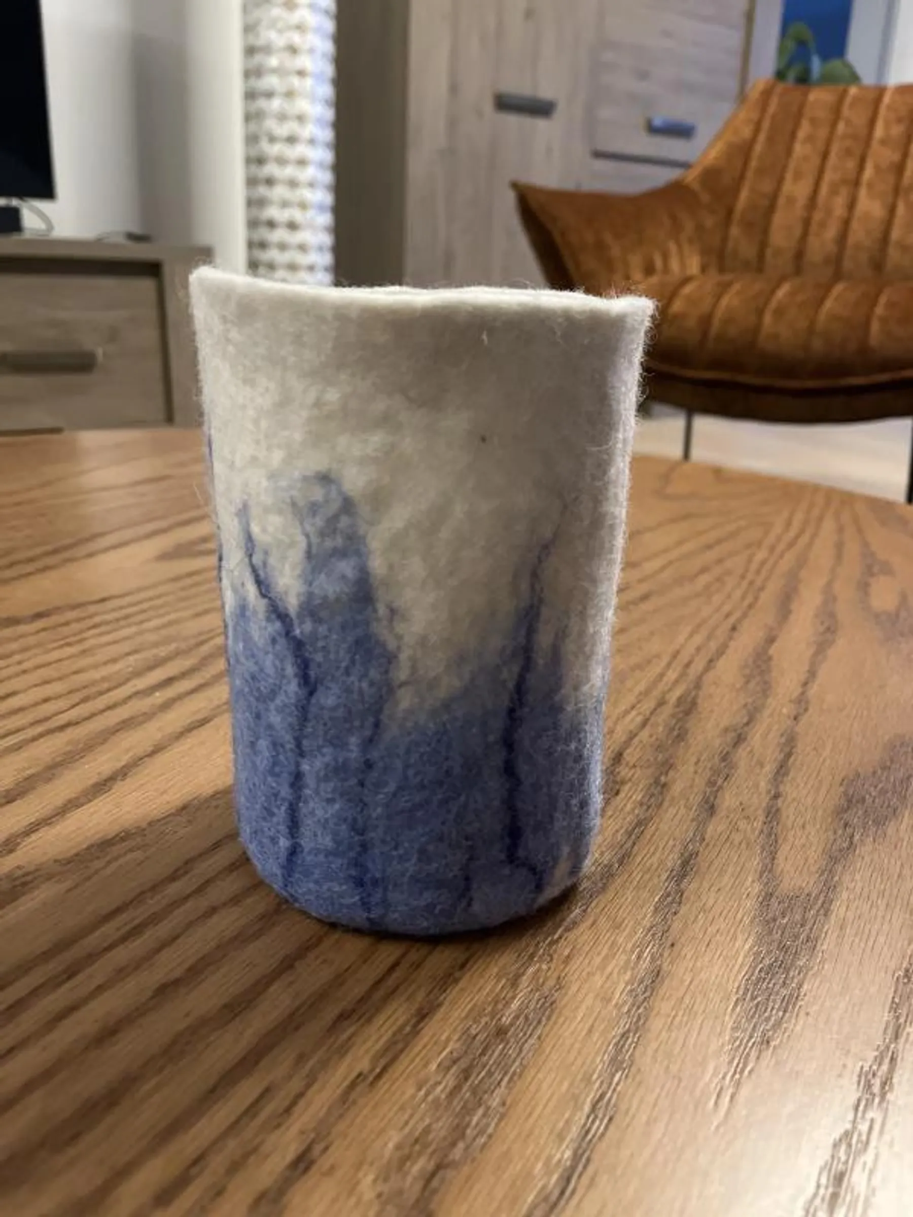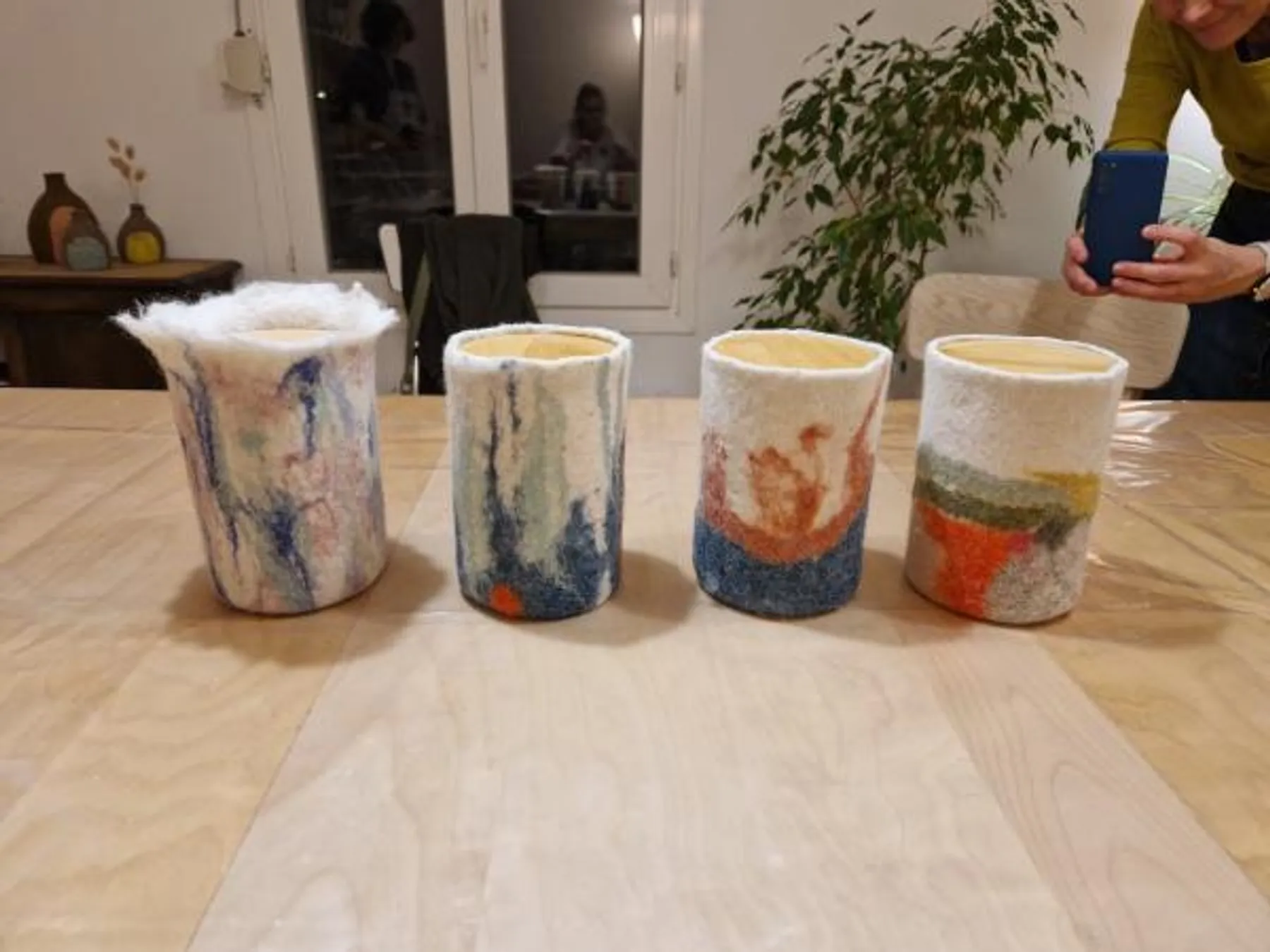 Plongez dans l'univers chaleureux de la laine cardée et feutrez votre vase avec Sophie, feutrière