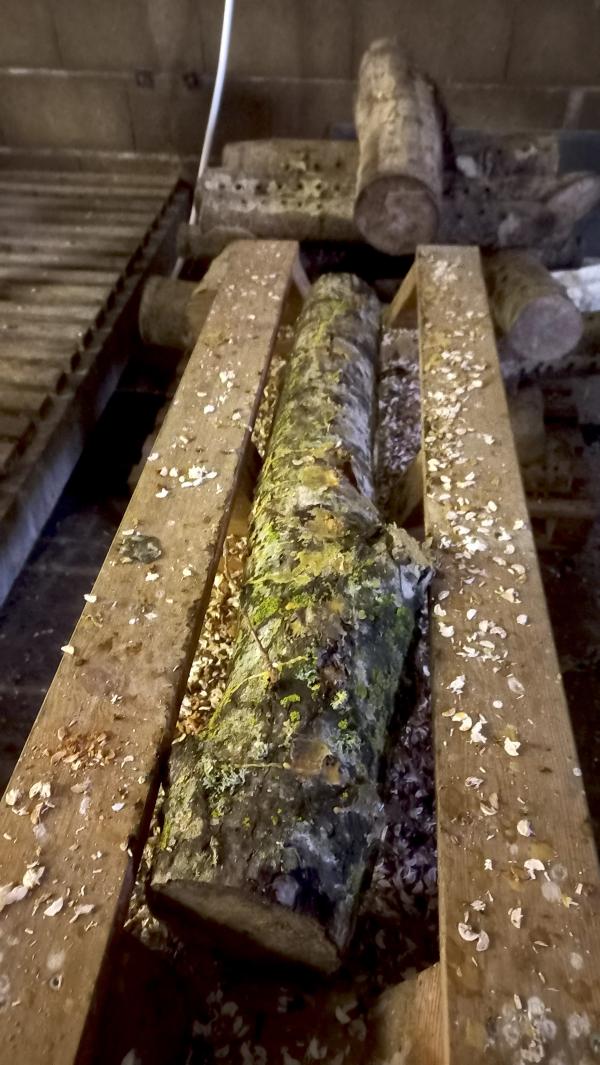 Kevin vous expliquera ensuite comment entretenir vos bûches chez vous. Il est conseillé de les placer à l'extérieur à l'ombre, en contact avec la terre, ou dans une zone ombragée. Si elles sont sur du béton, il est recommandé de les mettre dans un bac de terre ou sur deux couches de carton pour maintenir l'humidité.