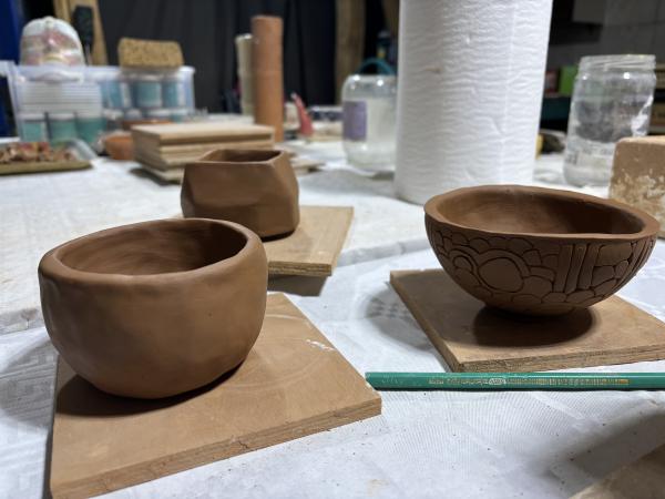 Vous réaliserez en tout 4 bols, dont 2 au tour et 2 grâce aux différentes techniques de modelage (pincé, textures de surface, etc.)