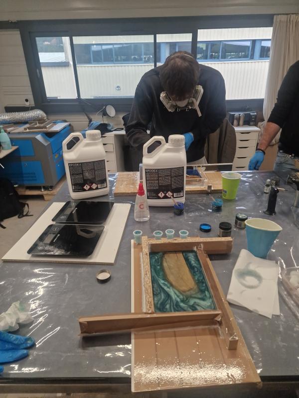 Appréhendant l'utilisation de l'Epoxy, cet atelier a répondu à mes attentes : manipulation et surtout conseils avisés d'une professionnelle.