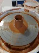 Une fois la terre souple et vos mains échauffées, vous vous installerez sur le tour. Vous monterez une quille pour éliminer les éventuelles dernières bulles d'air, et centrer la terre sur le tour grâce à la force de vos mains ! Toujours accompagné.e, vous verrez peu à peu l'argile prendre forme sous vos doigts, jusqu'à ce qu'elle devienne un bol (ou une autre petite pièce), que vous pourrez sortir du tour.