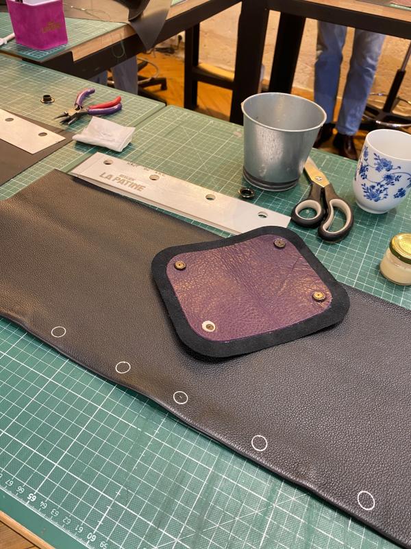 Ensuite, le cuir ! Vous choisirez, parmi les pièces de cuirs prédécoupées et travaillées au préalable, les textures et couleurs qui vous ressemblent. C'est une expérience très sensitive !