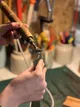 Pour l'assemblage, vous réaliserez plusieurs essais à la machine avant de vous lancer sur votre pièce. Pour cette étape, vous devrez griffer le cuir, encoller, finir les coutures à la main et taper les coutures au marteau.