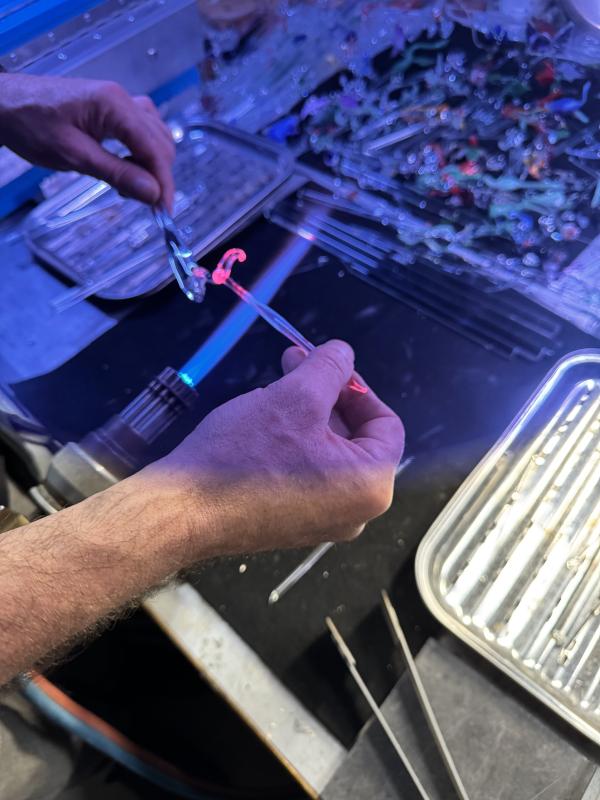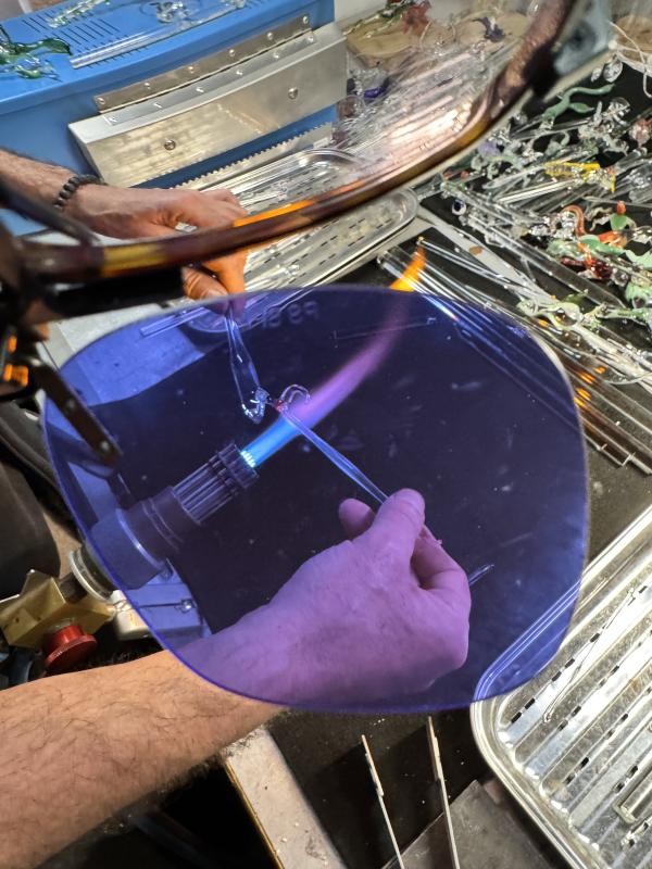 • Prise en main : munissez-vous de vos lunettes de verrier, puis prenez en main les baguettes de verre pour ressentir la matière chauffée à la flamme. Commencez par des exercices simples afin de maîtriser les gestes essentiels.