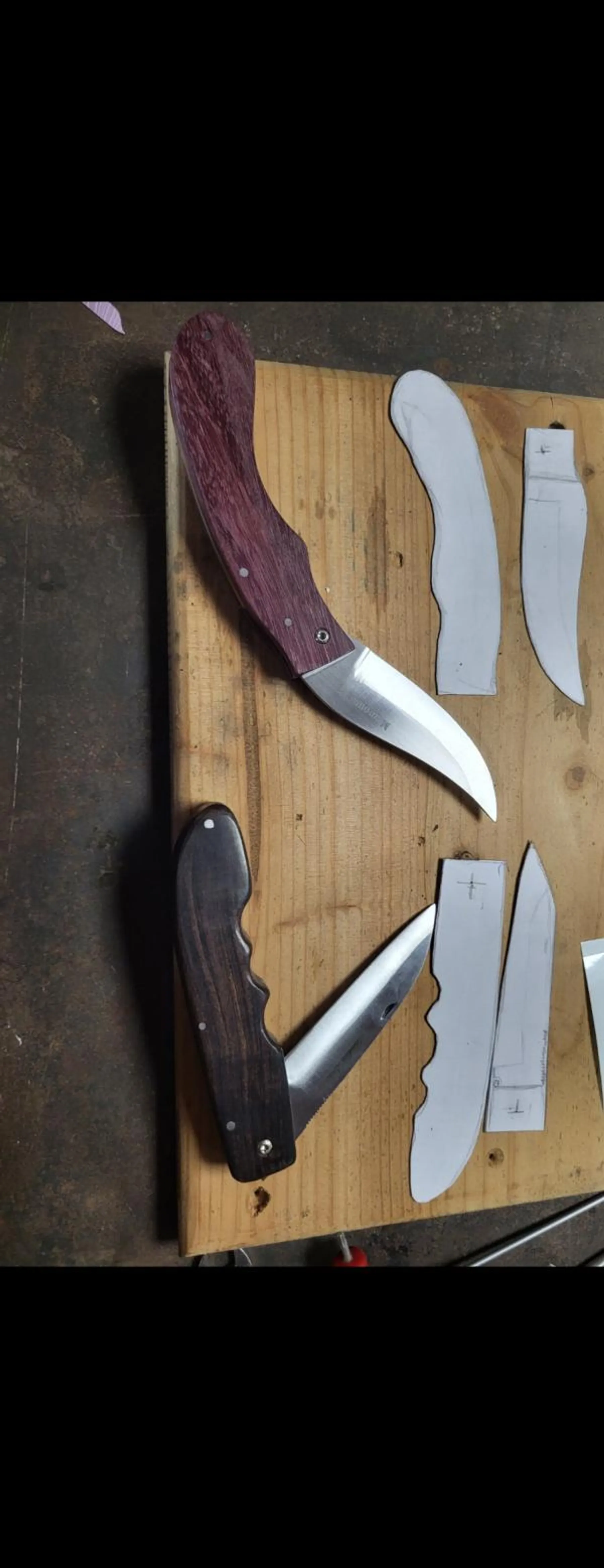 Vous passerez ensuite à la fabrication du manche : découpe et ponçage des matériaux choisis. Si l’un de vous réalise un couteau pliant, il installera le mécanisme de pliage, tandis que l’autre procédera à l’assemblage classique de son couteau de cuisine.