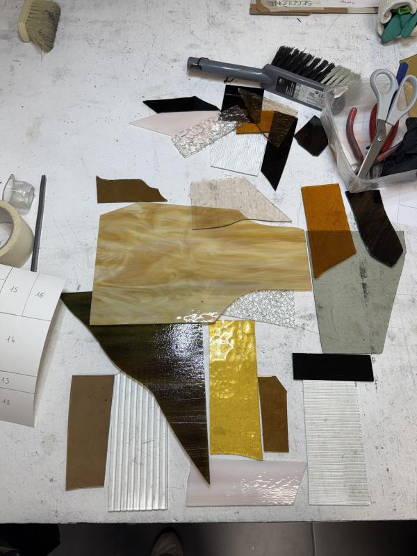 Dès votre arrivée, le processus commencera par la délicate tâche de définir le placement des verres de votre vitrail sur lequel vous laisserez votre empreinte artistique.