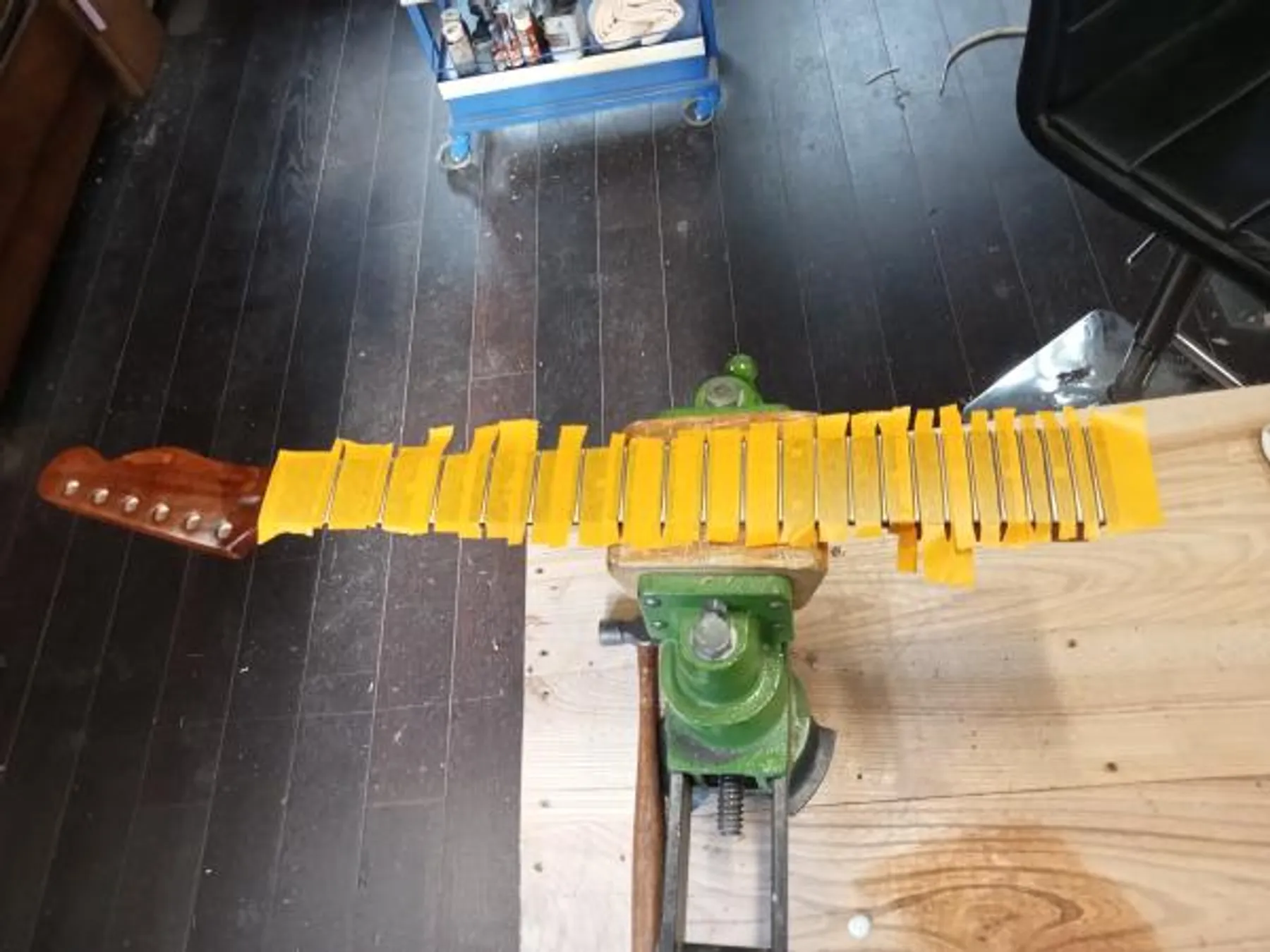 Vient ensuite l’assemblage de la guitare : collage du manche, montage du corps et installation des différentes pièces d’accastillage. Vous apprendrez à manipuler les composants électroniques, à réaliser le câblage des micros et à régler chaque élément avec précision. Un travail minutieux qui vous permettra de mieux comprendre le fonctionnement interne de votre instrument.