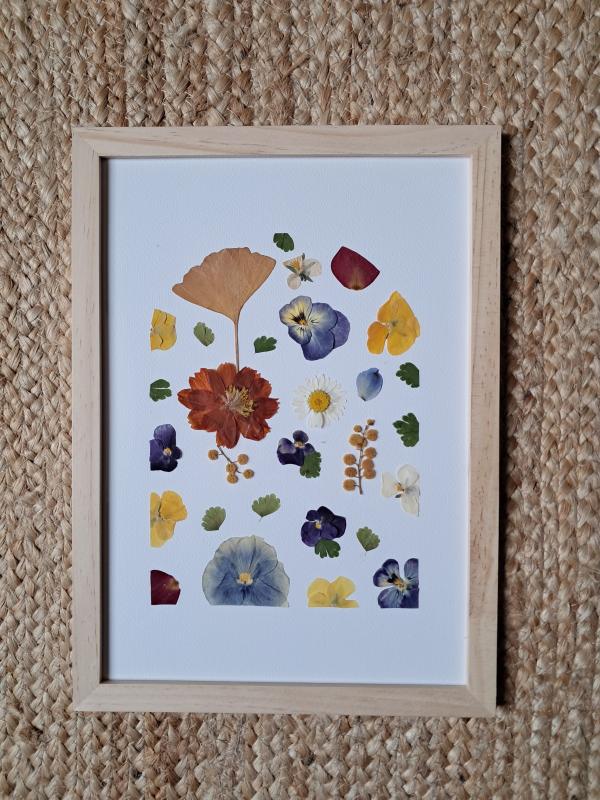 Vous commencerez alors à assembler votre herbier, en disposant soigneusement les fleurs séchées dans la forme choisie. Vous vous laisserez porter par les couleurs chatoyantes des fleurs et des feuilles pour une composition harmonieuse et personnelle.