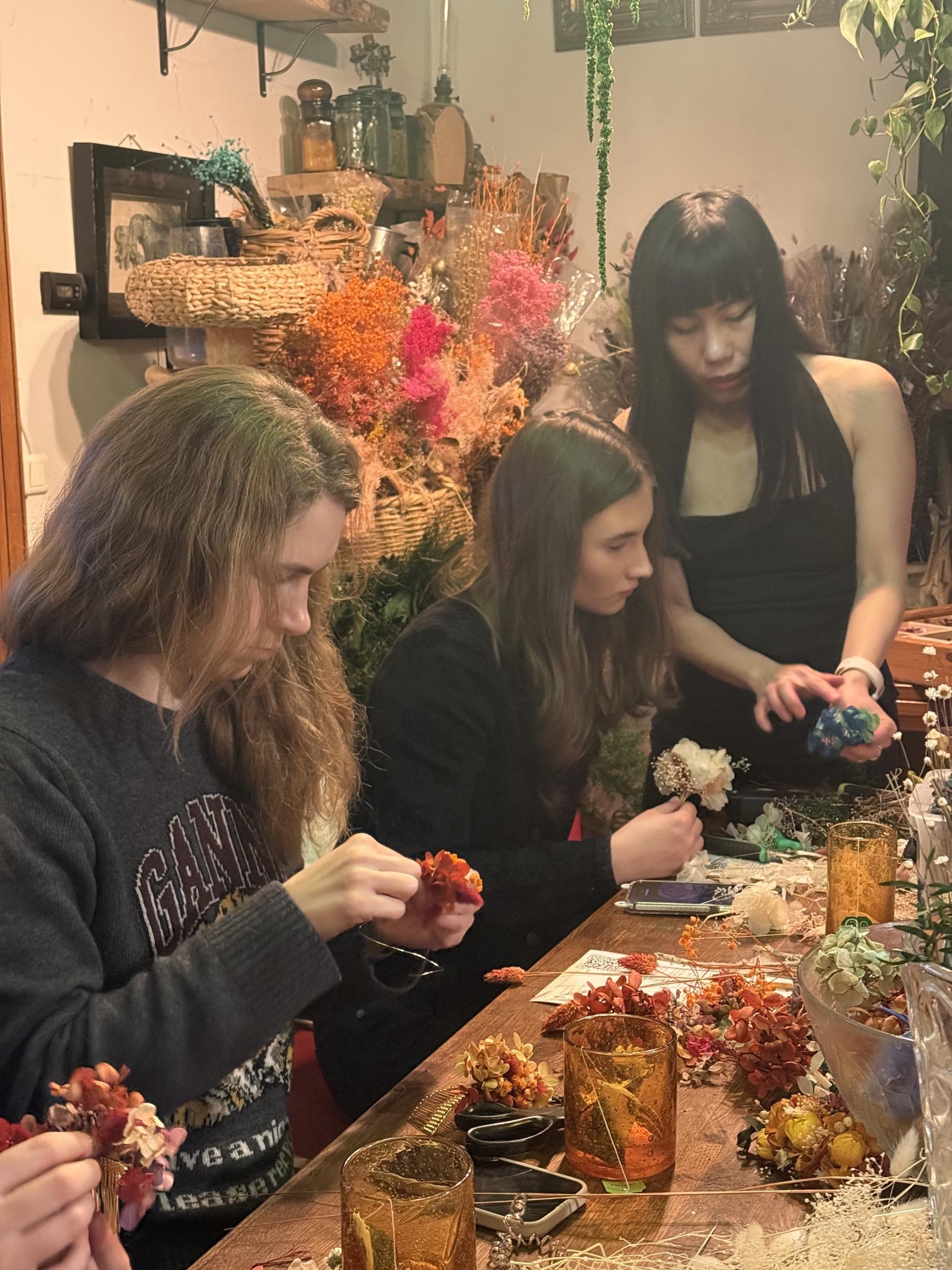 Embarquez à la croisée du végétal et de l'artisanat en confectionnant votre superbe bijou de cheveux en fleurs stabilisées avec Kim, designer végétal