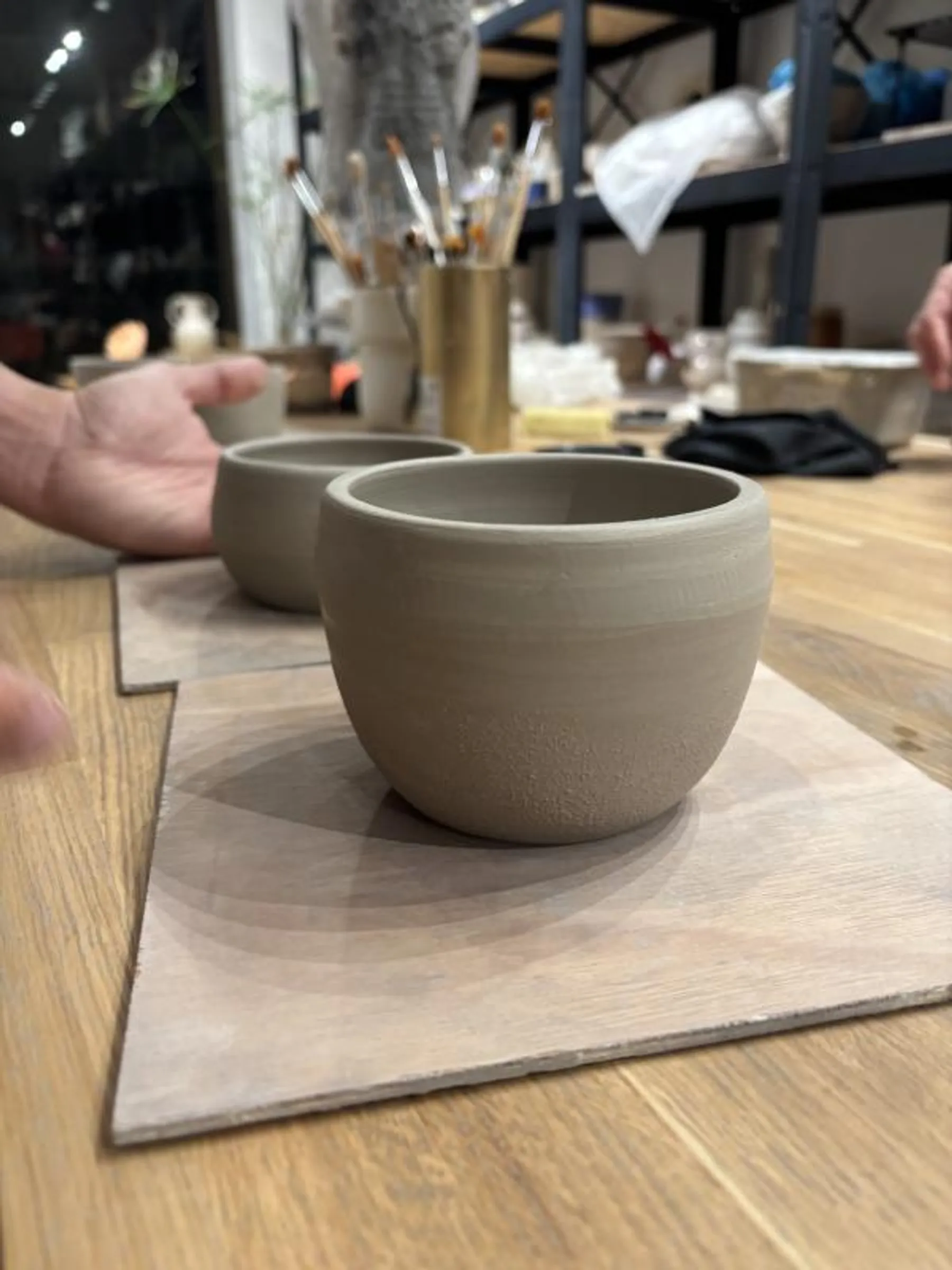 Après une présentation des outils et une démonstration des techniques clés – du centrage à la montée de la terre –, vous vous installerez chacun sur votre tour pour créer vos premières pièces.