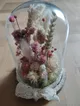 Puis, prenez place à votre table de travail avec votre enfant et laissez libre cours à vos inspirations communes. Ensemble, vous disposerez délicatement les fleurs séchées, tout en ajoutant des feuillages et des éléments décoratifs pour donner vie à votre cloche fleurie.