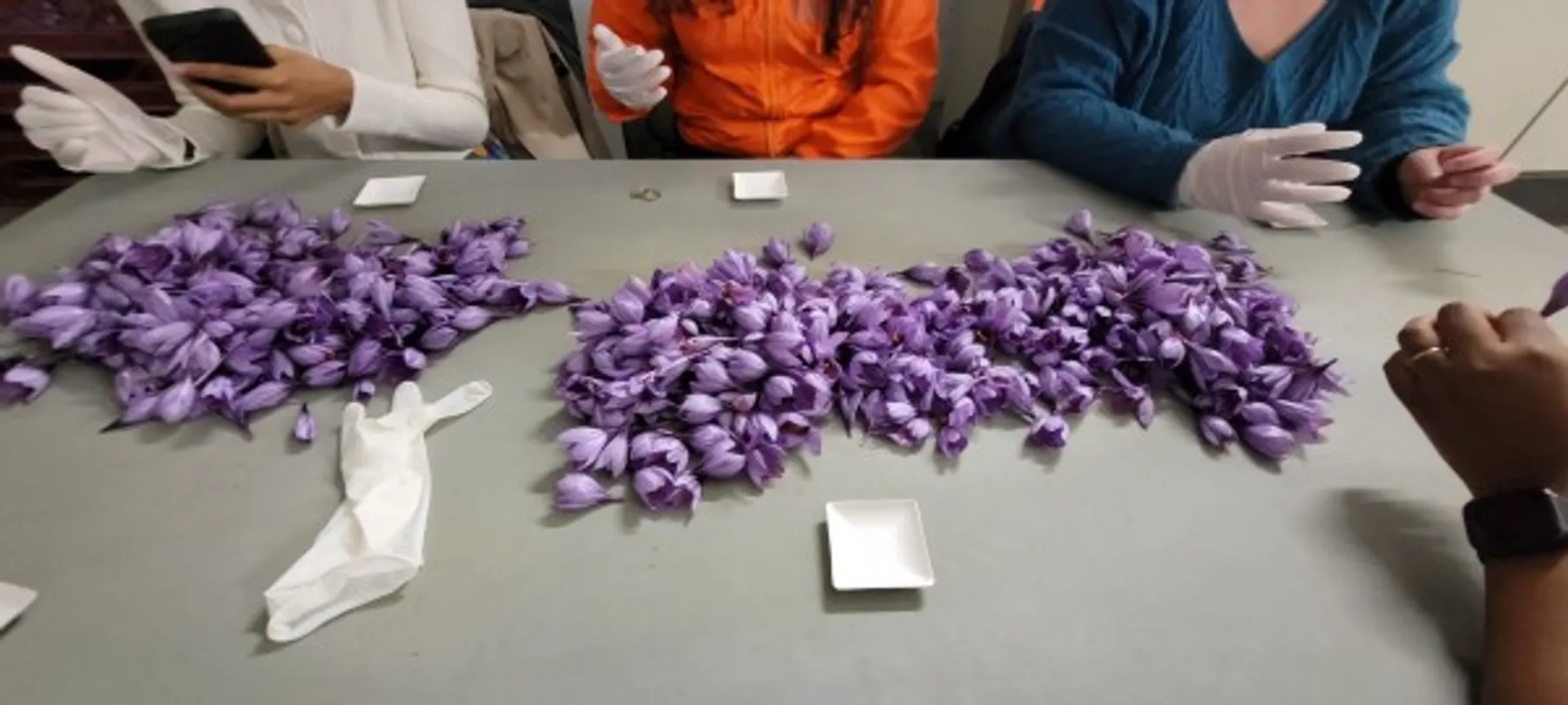 Enfin, assis ensemble autour d’une table, vous apprendrez à émonder soigneusement les précieux pistils des fleurs de safran avec de petits ciseaux.