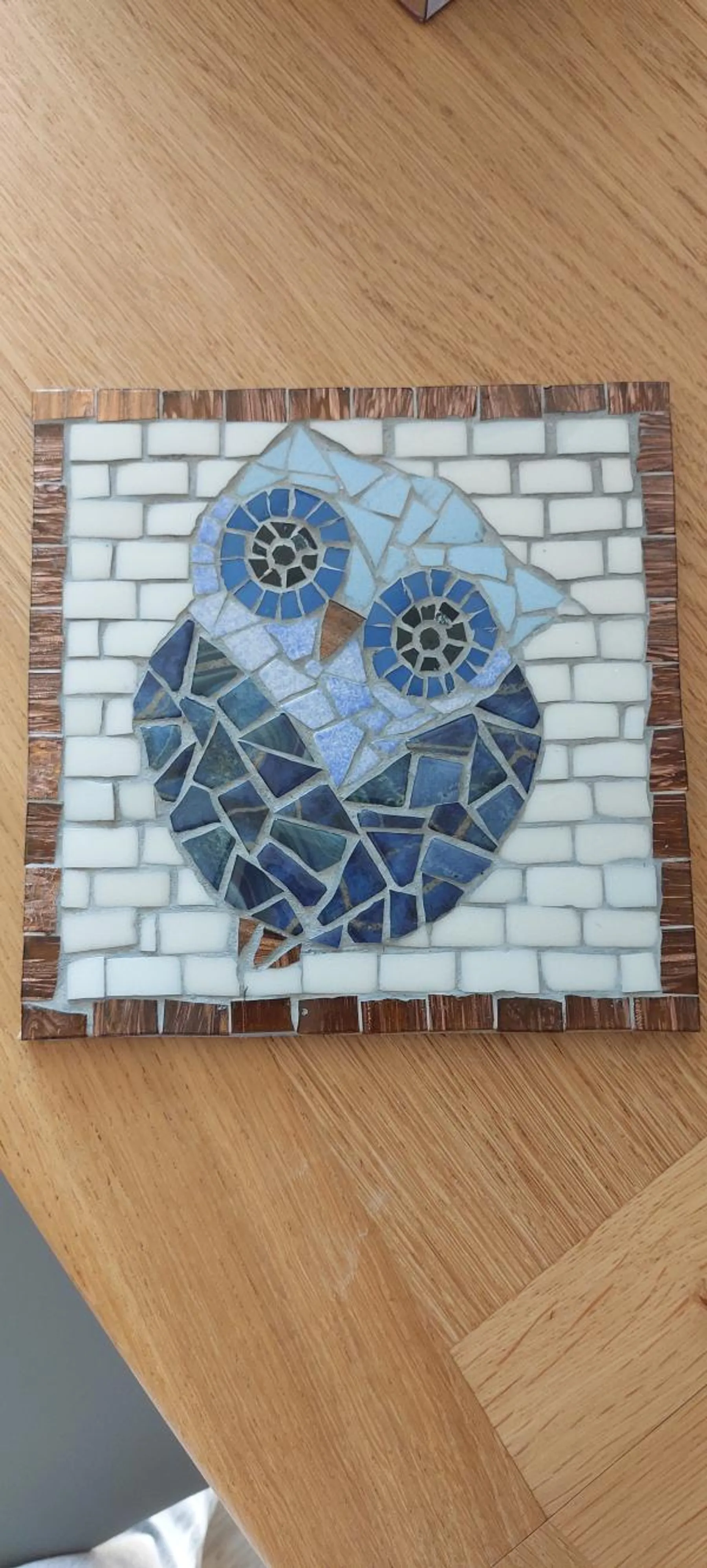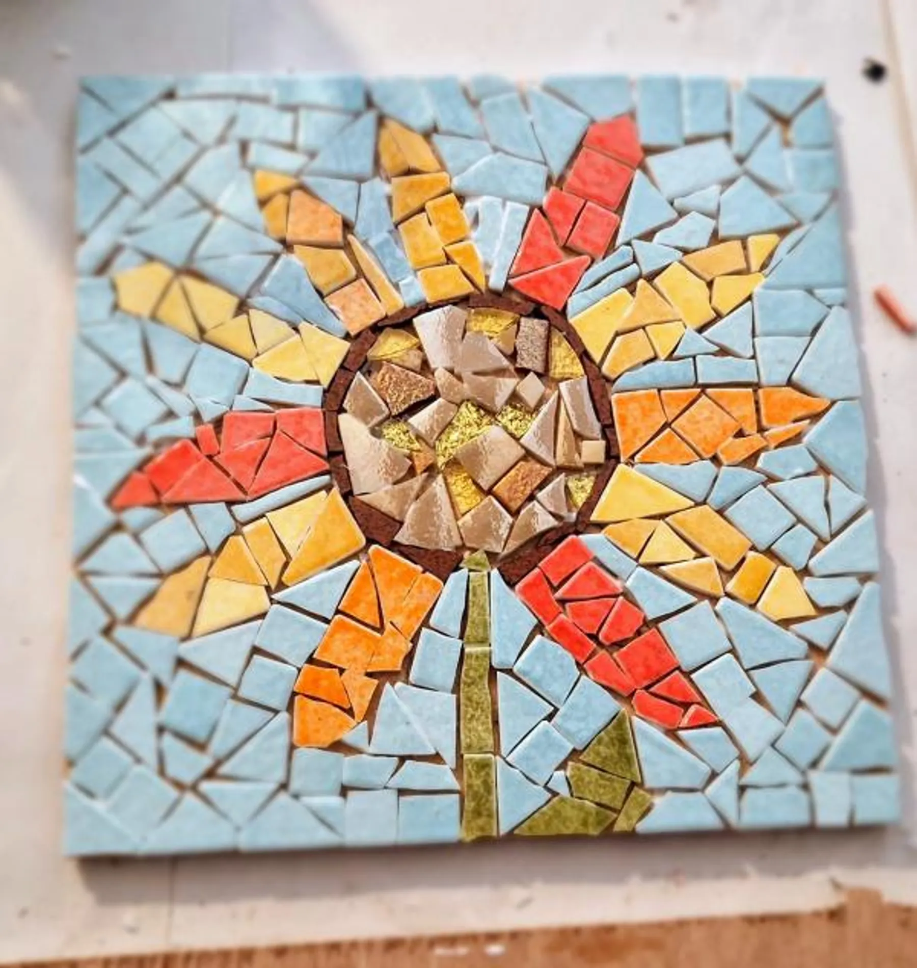 Après quelques fenitions, vous embarquerez fièrement votre carré en mosaïque fait par vos soins.