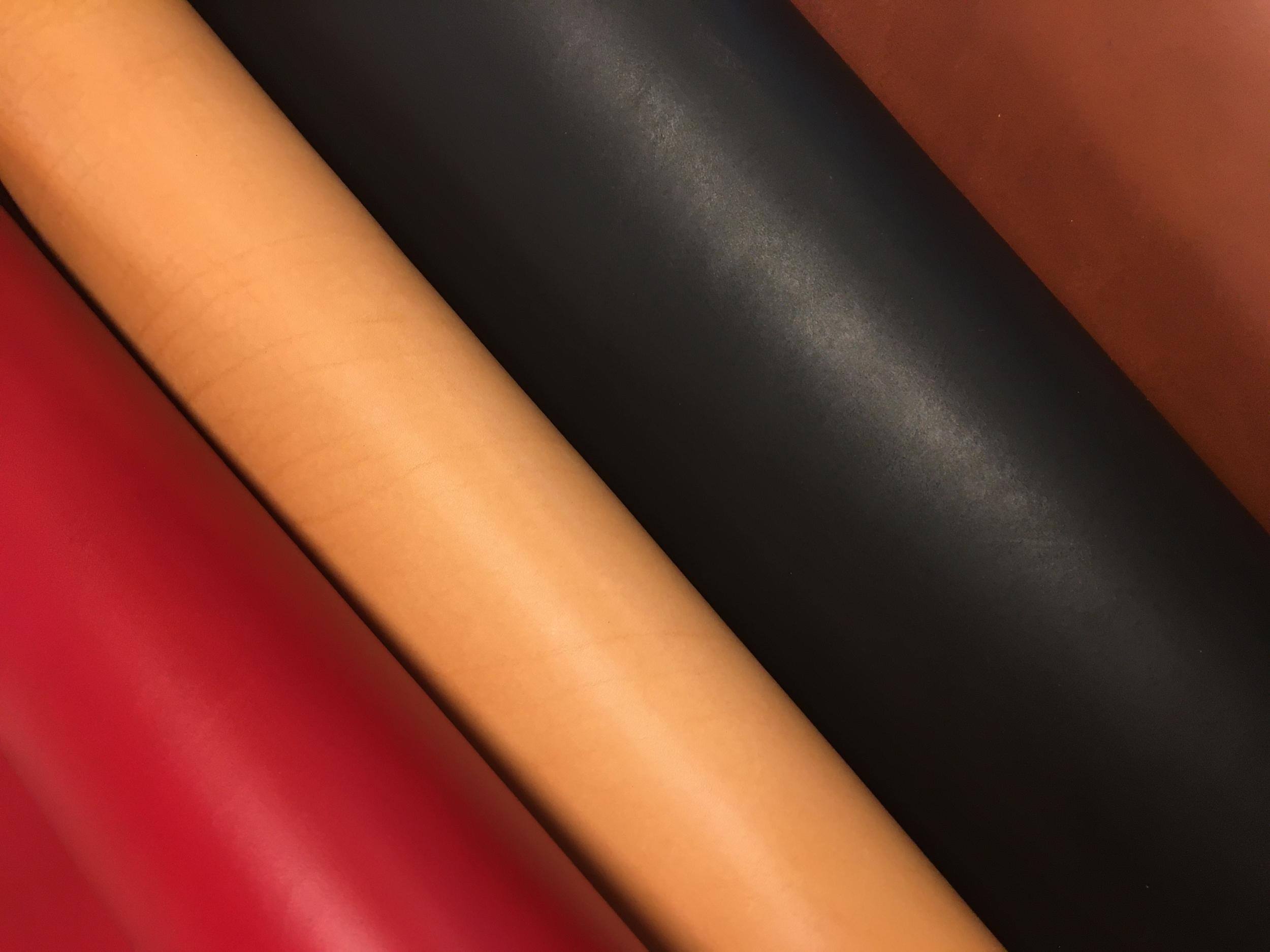 • Présentation des matériaux : découvrez les cuirs à tannage végétal (bordeaux, châtain, naturel et noir) et les outils.