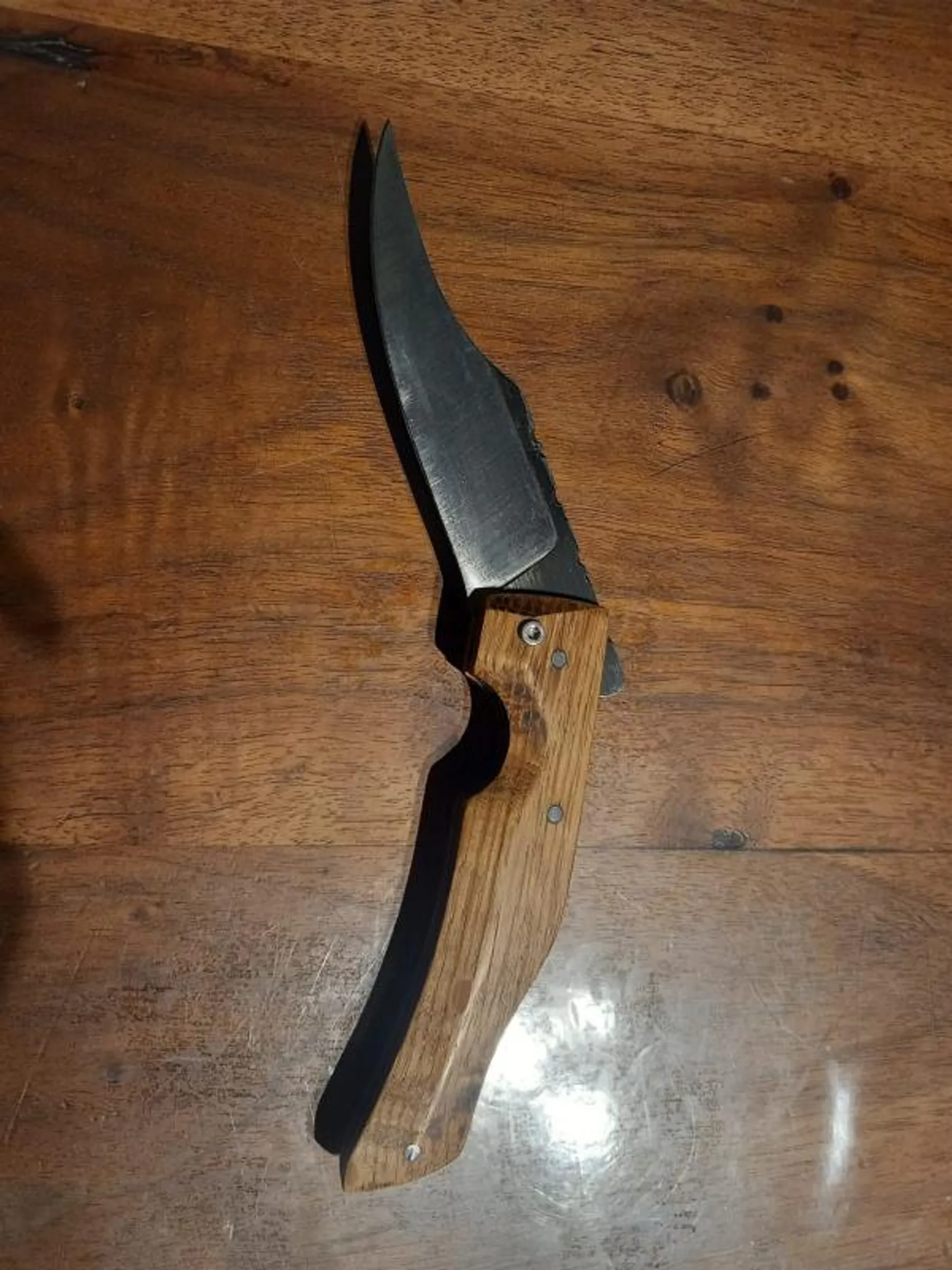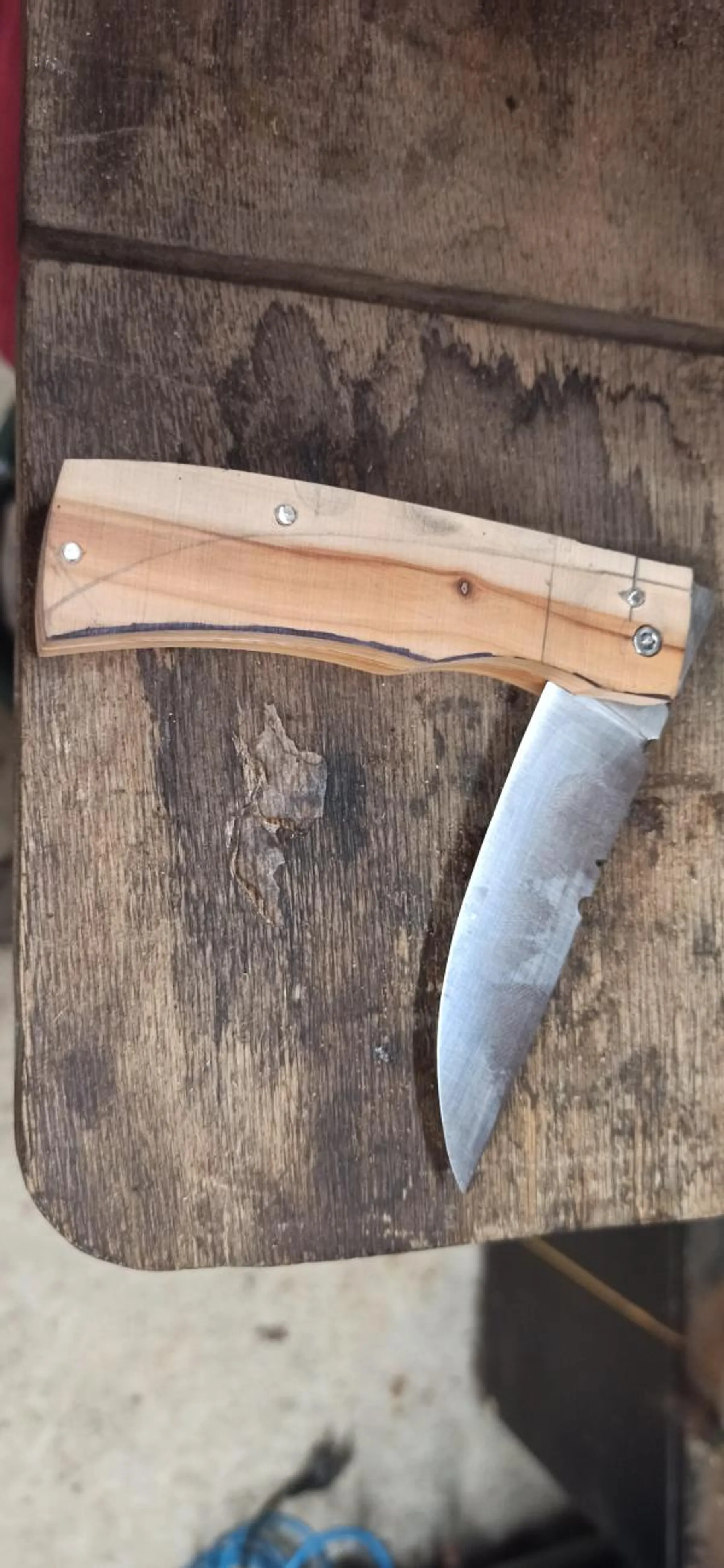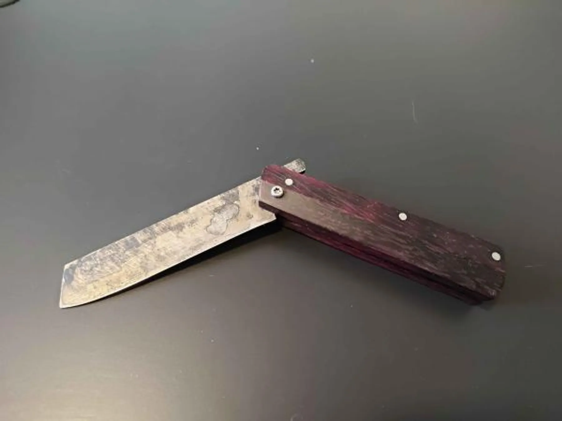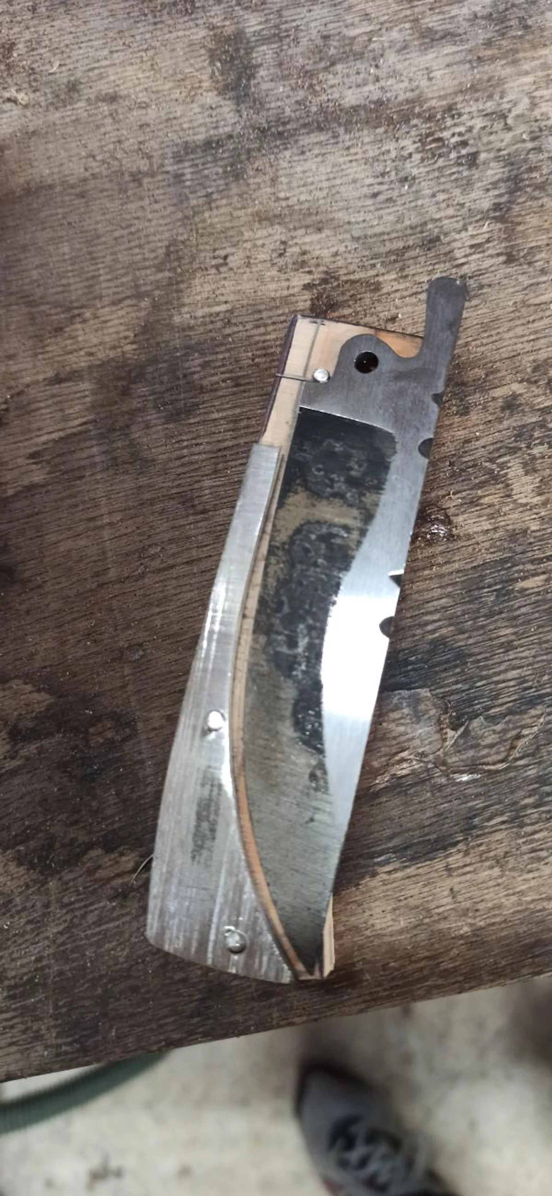 Vous pourrez aussi orner votre lame par un travail de guillochage avant le montage du manche et du mécanisme de pliage.