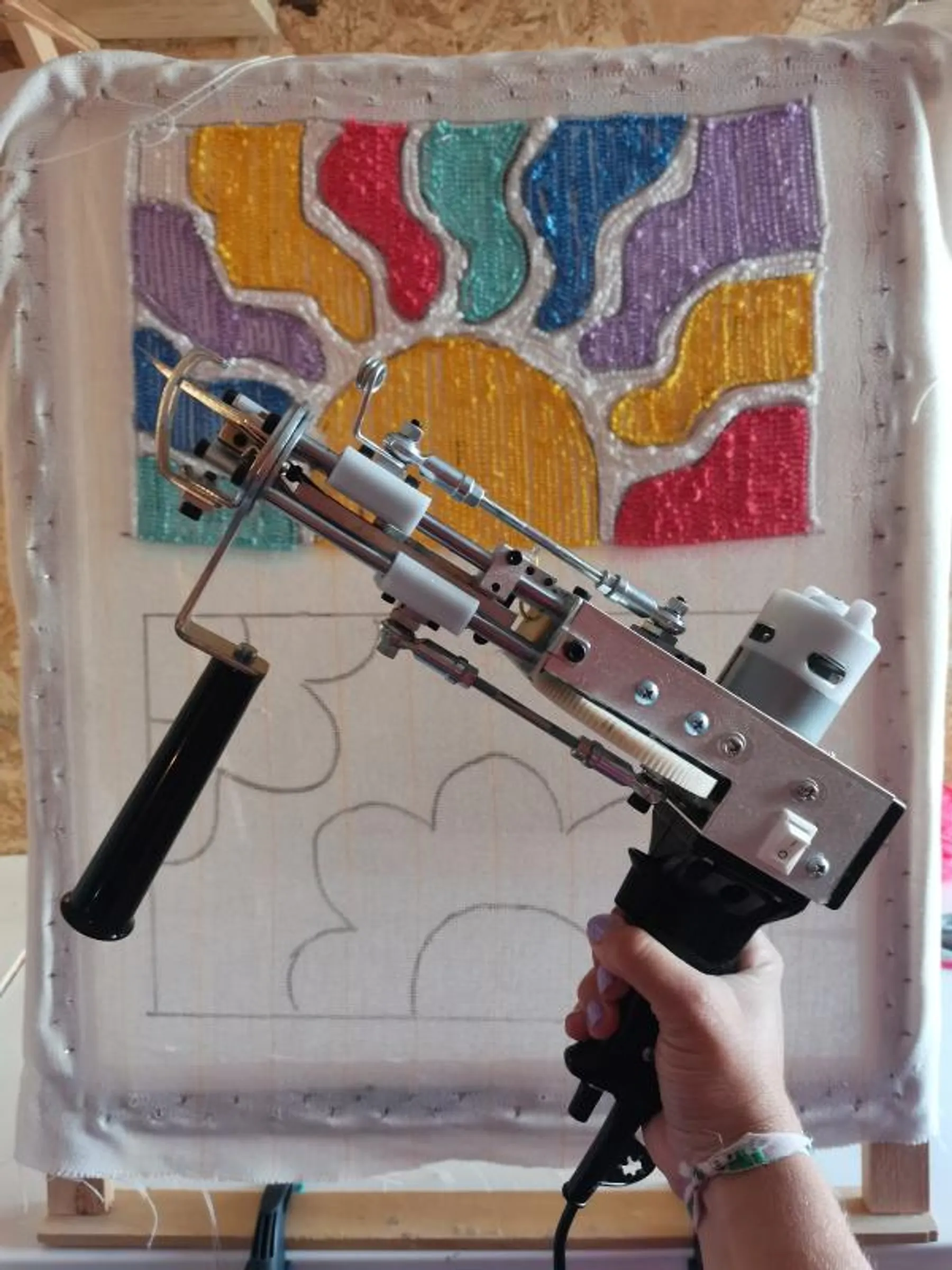 Une fois vos choix faits, il est temps de passer à l'action ! Grâce à un projecteur, vous dessinerez votre motif sur la toile, ce qui rend la mise en route encore plus facile et précise. Ensuite, vous aurez l'opportunité de vous familiariser avec le tufting gun, un outil passionnant qui vous permettra de donner du relief à votre dessin. Vous commencerez par tracer le contour de votre motif, suivi du remplissage, où vous pourrez laisser libre cours à votre créativité.