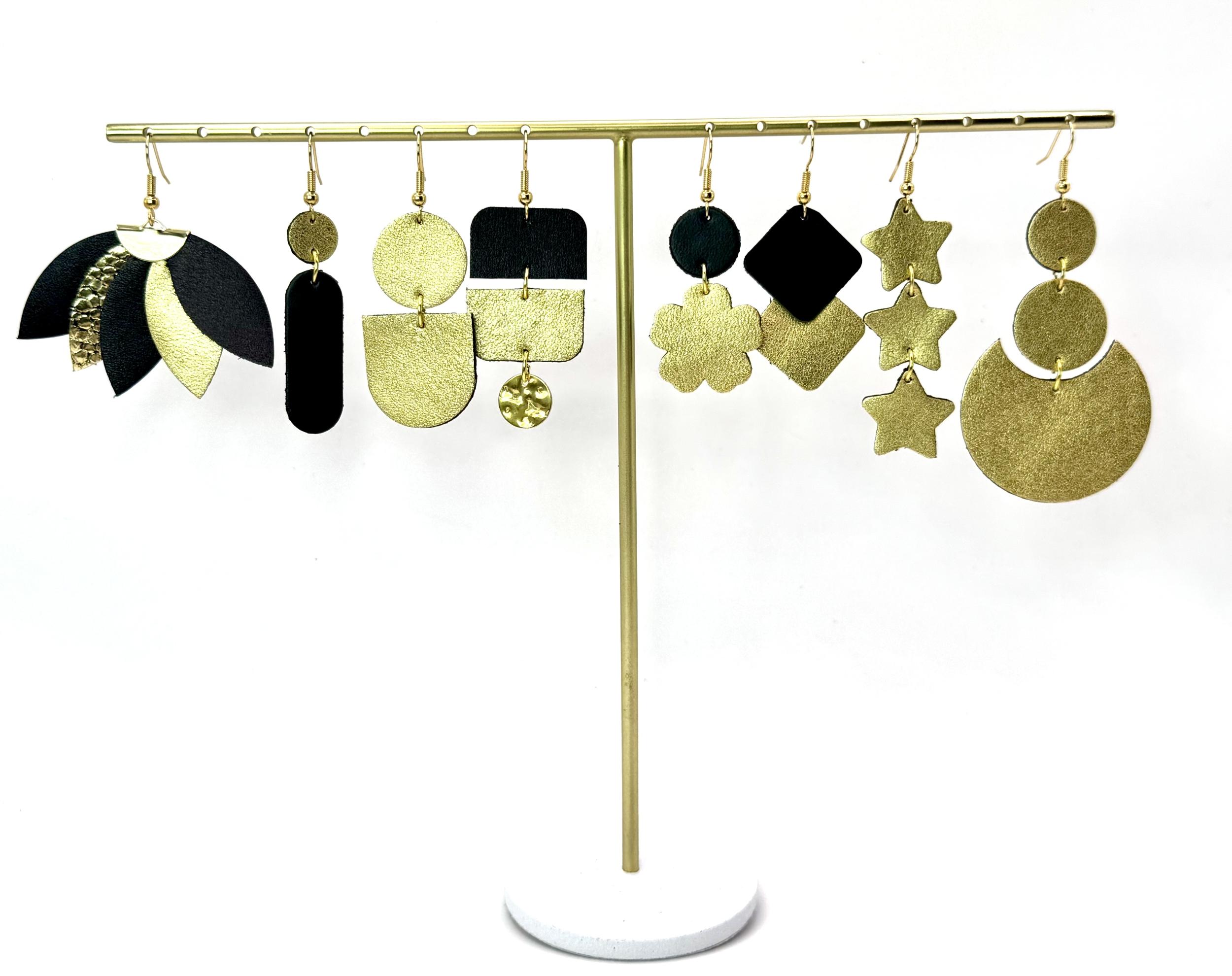 • Réalisation des bijoux : découpez le cuir à l’aide des emporte-pièces, fixez les rivets ou mousquetons et personnalisez vos pièces avec gravure si vous le souhaitez.