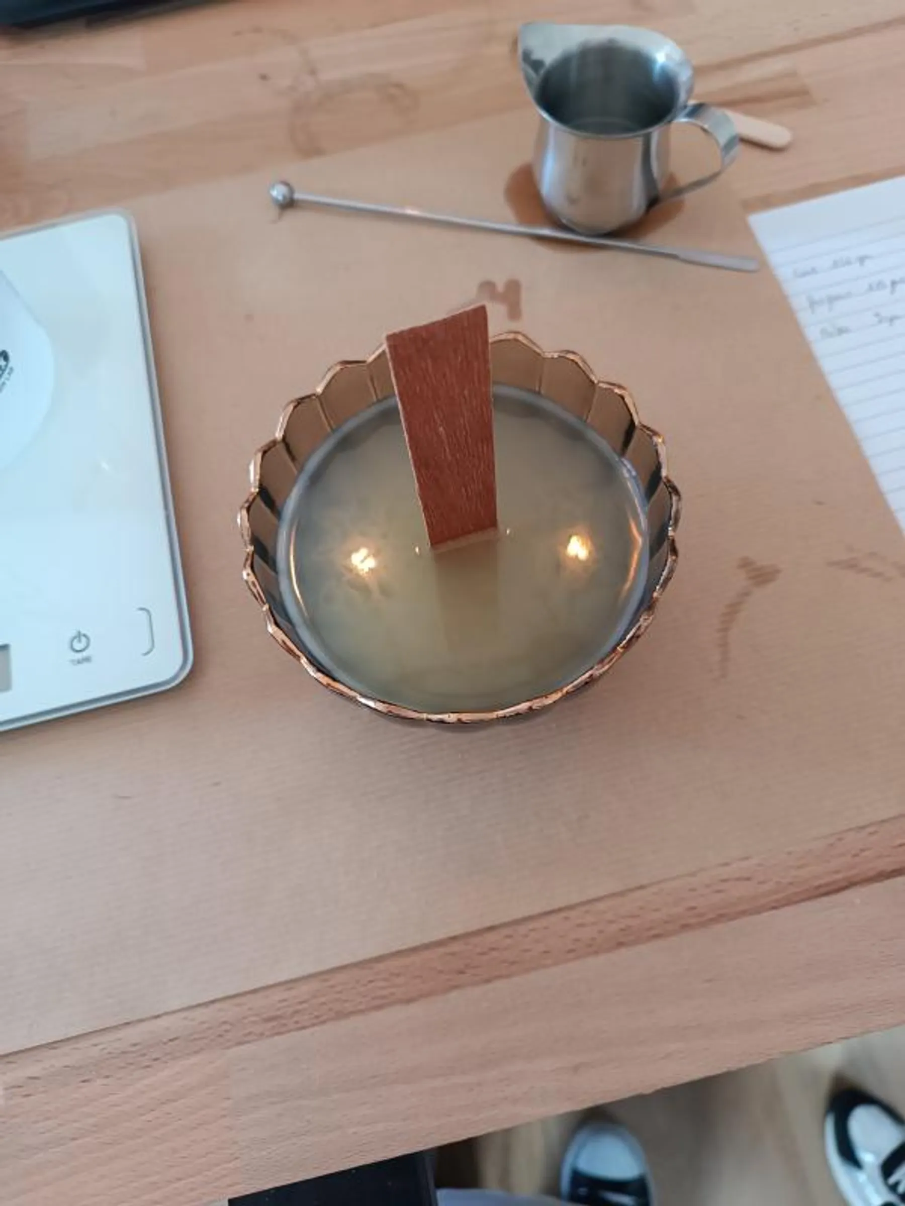Après cette découverte sensorielle, place à la pratique ! Vous apprendrez à couler votre propre bougie avec de la cire de soja. Vous avez un contenant préféré à la maison ? Qu'il s'agisse d'une tasse ancienne, d'un bocal de famille ou de tout autre contenant, apportez-le pour lui donner une nouvelle vie ! Vous pourrez également en choisir un parmi ceux proposés par l'artisane.