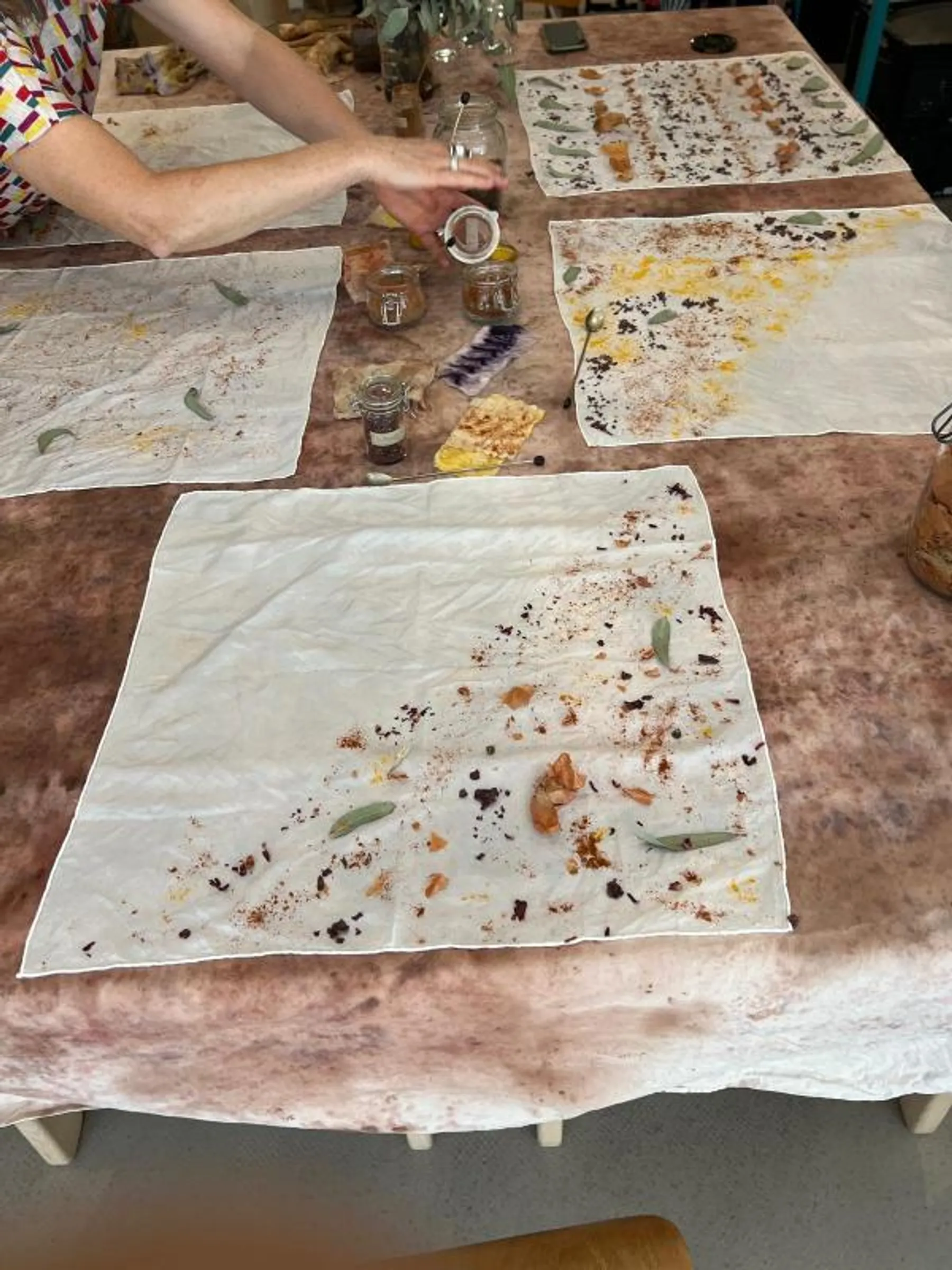 La teinturière vous guidera pour appliquer la technique de l'ecoprint grâce à des feuillages, des fleurs et des pigments.