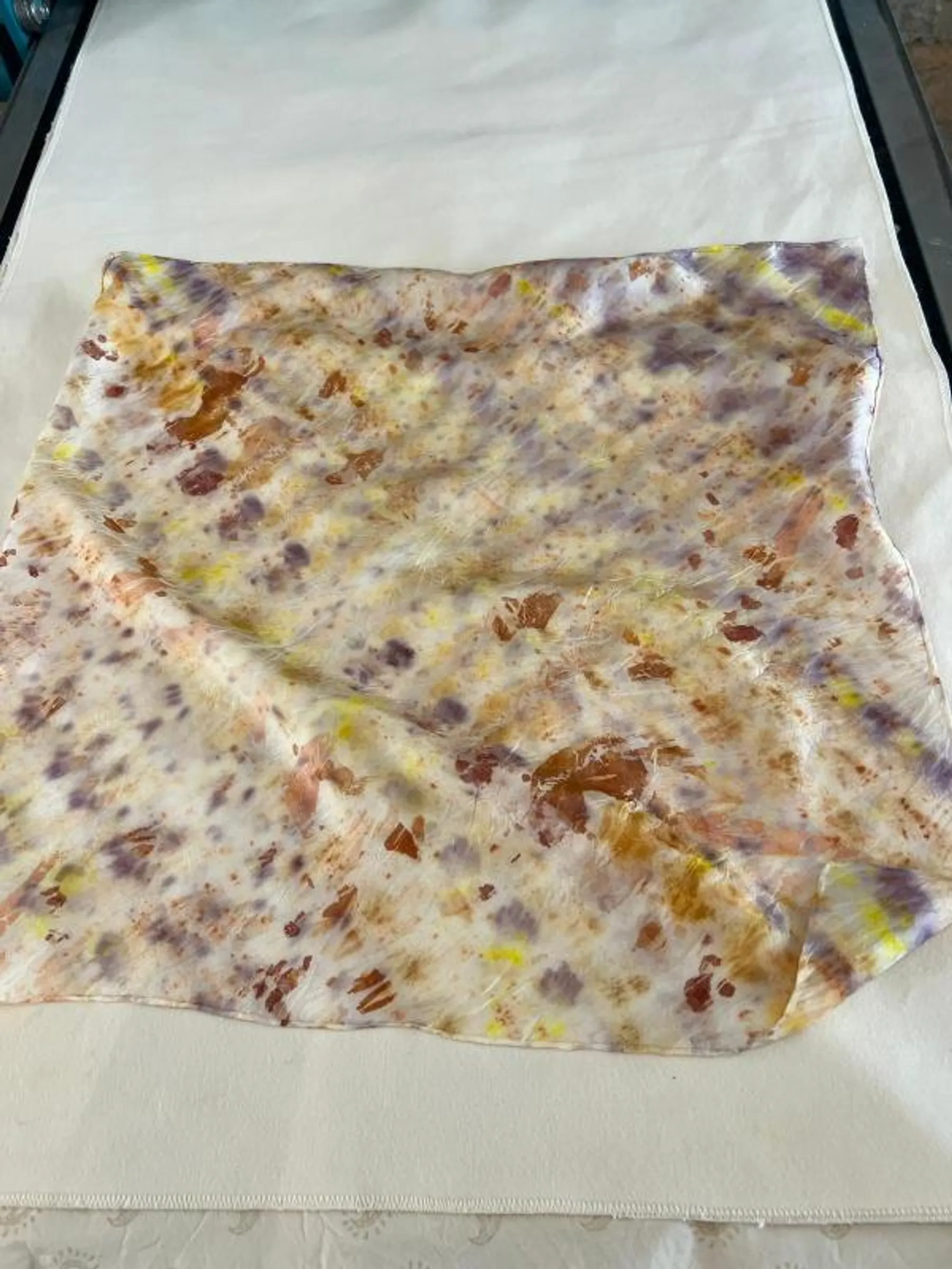 Lors de cet atelier, c'est un beau carré de soie (55 cm x 55 cm) que vous personnaliserez en compagnie de Sandrina, une vraie pro de la teinture naturelle.
