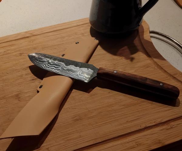 Une magnifique journée d'initiation à la fabrication d'un couteau damas et son fourreau en cuir avec Thibaud. On manipule différents matériaux et outils en compagnie d'un artisan pédagogue et très sympathique. L'acier de Damas est tout aussi complexe que mystérieux. La révélation de ses motifs est un moment magique. Nous nous sommes laissés guider par la lame et mes envies, et le résultat de ce couteau avec son manche en noyer est plus qu'époustouflant. Foncez créer votre propre couteau, unique, avec un artisan qui saura vous accueillir au sein de son atelier. Merci encore !