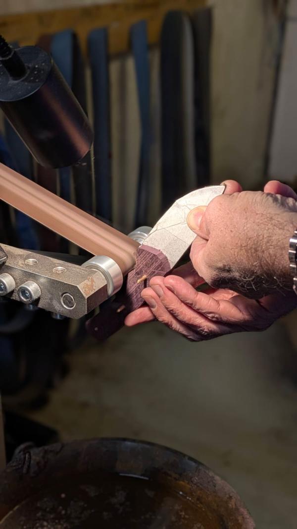 Vous appliquerez ensuite un traitement sur le manche et la lame pour protéger votre couteau, avant de passer à la finition et à l’affûtage de la lame.