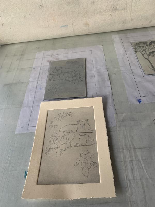 J'ai adoré cette découverte de la taille douce, Leila m'a transmis sa passion et son savoir faire. Quel plaisir de sortir de l'atelier avec des réalisations, la plaque de zinc gravée, et des tirages ! Sans oublier les conversations avec Leila autour de l'art et de ce qui l'anime. Un immense merci à elle !
