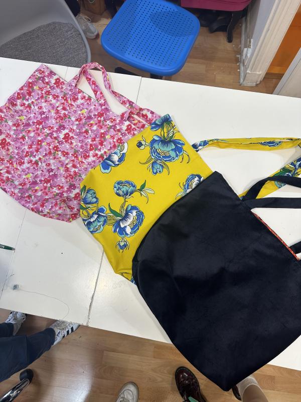 Après une démonstration technique, vous serez guidé pas à pas pour réaliser un sac au choix : cabas, tote bag ou sac pour tapis de yoga. Vous apprendrez à découper et à assembler les différentes pièces. Les artisanes seront à vos côtés tout au long du processus, vous permettant de vous familiariser avec les gestes clés.
