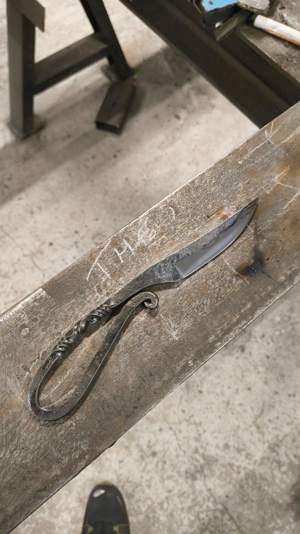 Excellente journée passée à réaliser une lame de couteau. Brice est accueillant, sympa, plein d'humour et surtout très pédagogue. En quelques traits dessinés à la craie sur la hotte de la forge il explique les conséquences d'un coup de marteau, comment élargir la matrice, comment l'allonger, comment la cintrer, etc... On apprend énormément et on réalise petit à petit, dans un timing parfaitement maitrisé une lame avec laquelle on repartira le soir. Merci pour cette journée et bon vent !